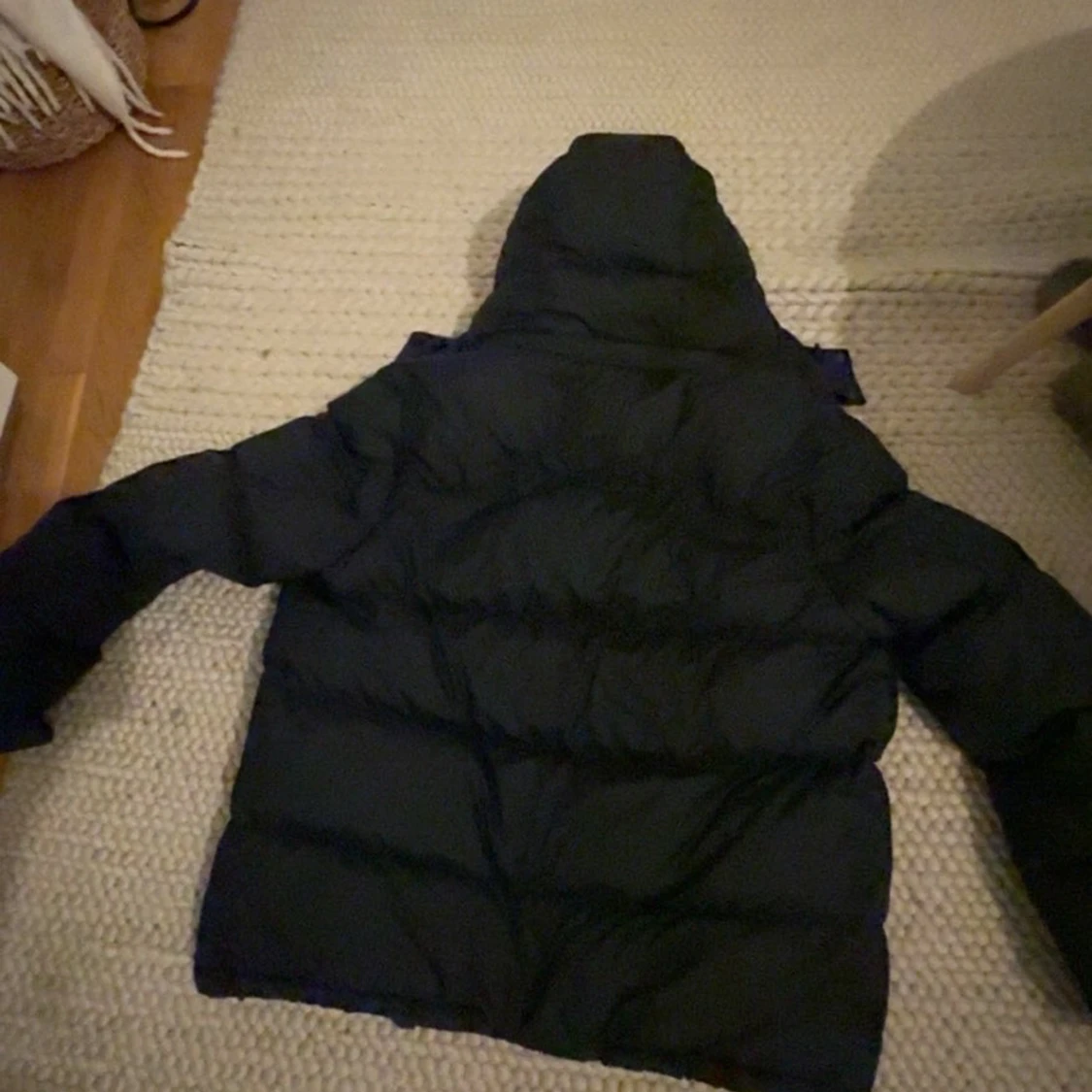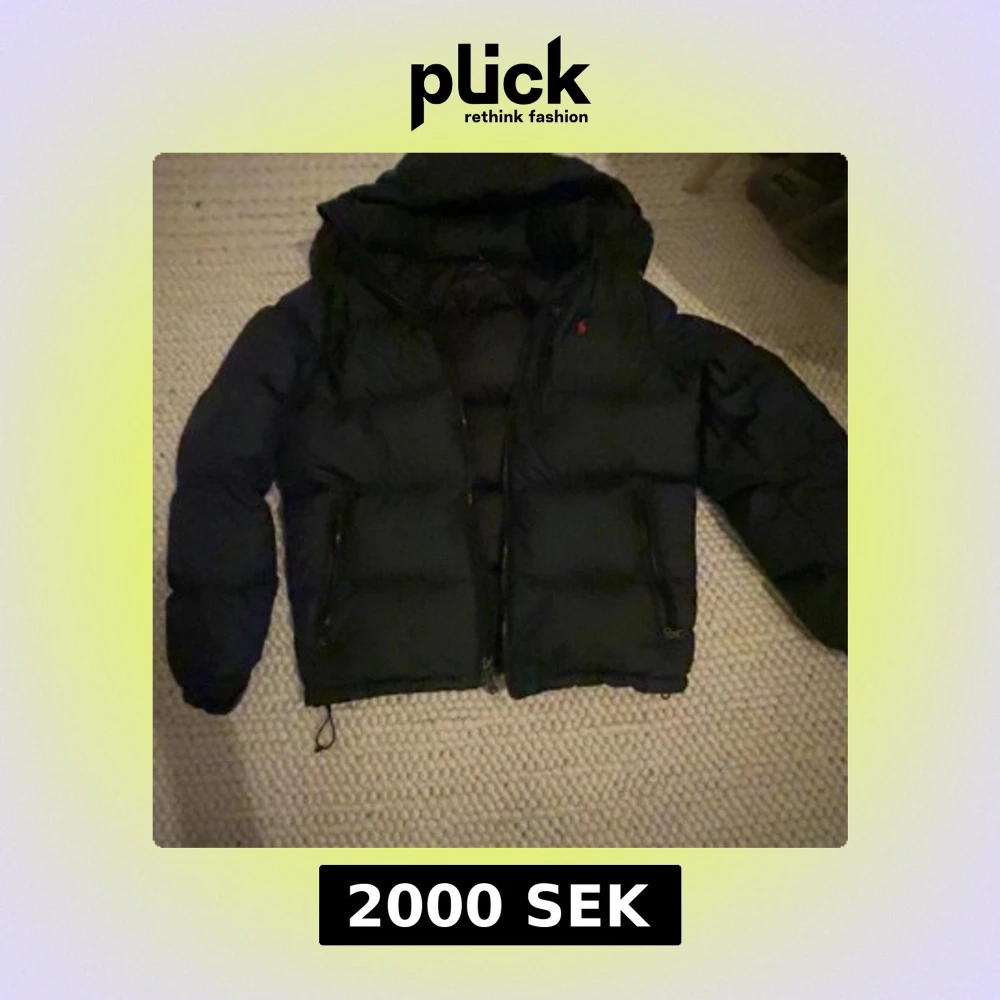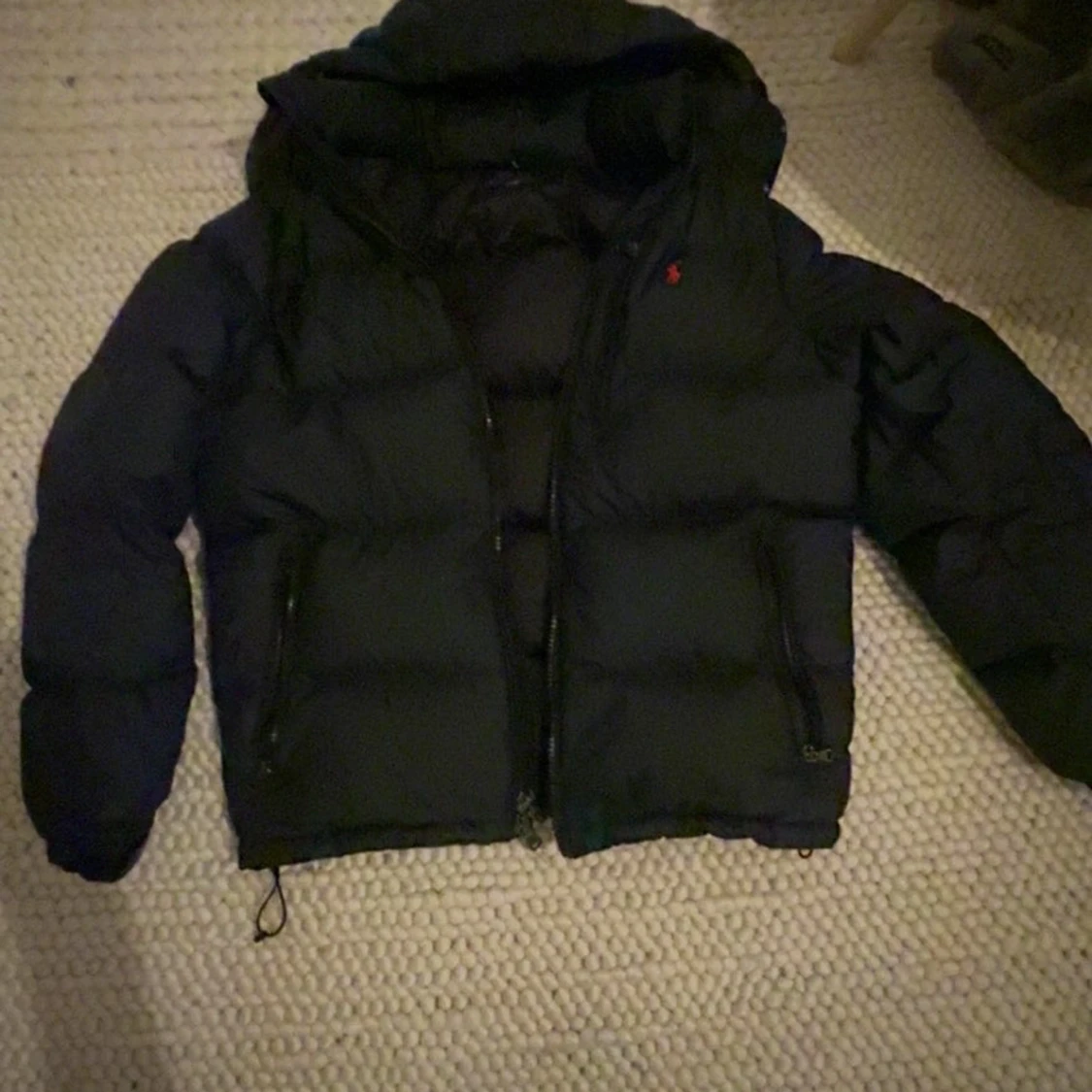 Svart dunjacka från Polo Ralph Lauren med huva och dragkedja framtill. Jackan har puffiga sektioner, två sidofickor med dragkedja och en liten röd Polo-logga på bröstet. Perfekt för kalla dagar och har en clean, sportig look.