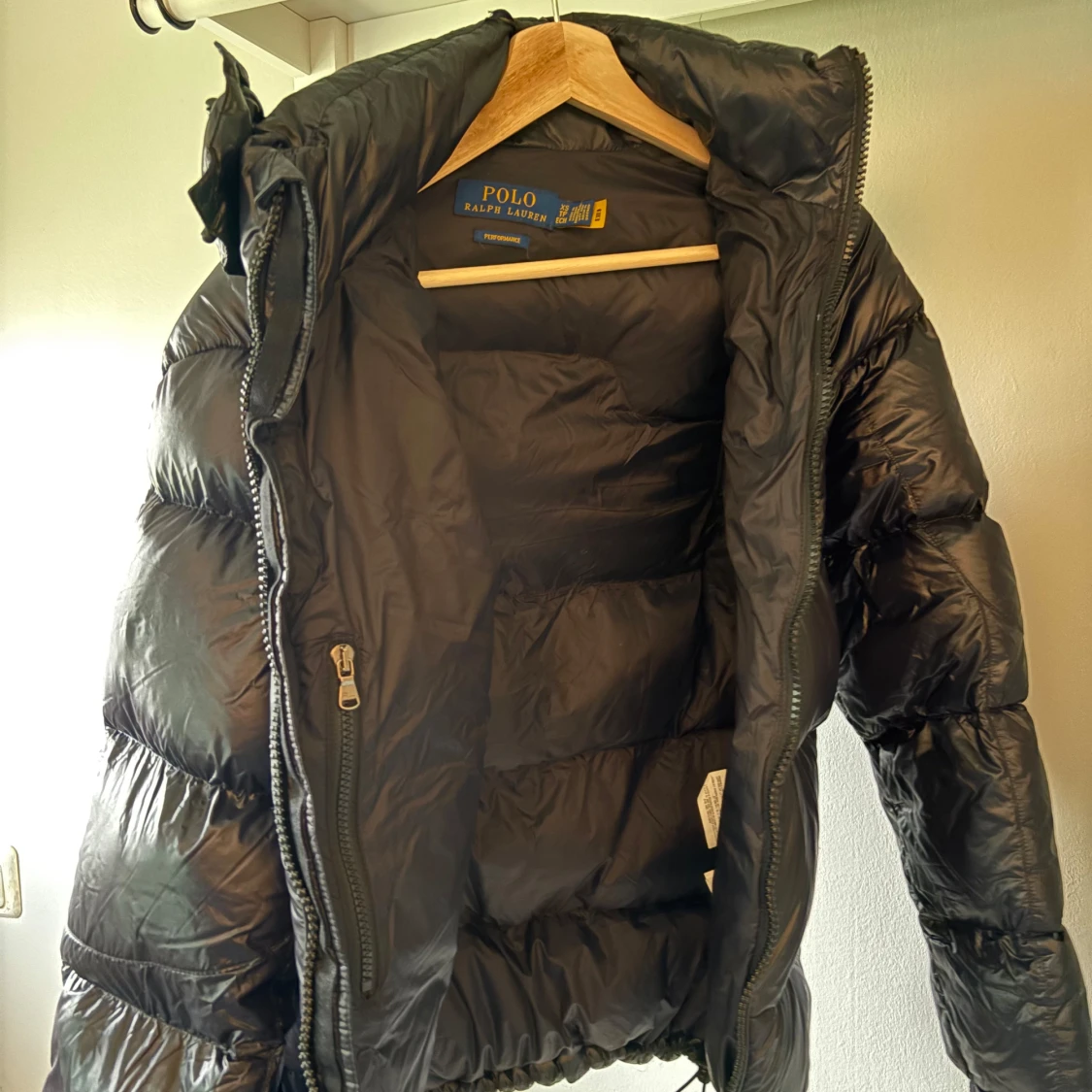 Säljer en snygg svart dunjacka från Polo Ralph Lauren. Jackan har en pufferdesign med dragkedja och en praktisk huva. Perfekt för kyliga dagar när du vill hålla stilen. storlek XS. Använd 3 gånger nypris 6000kr mitt pris 4000kr eller högst budande, vid snabb affär kan pris diskuteras.