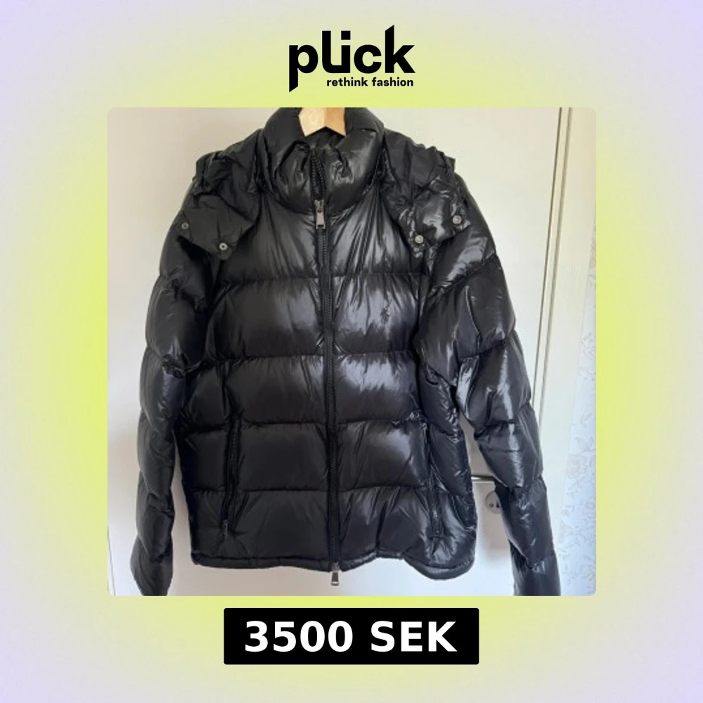 Snygg svart dunjacka från Ralph Lauren med glansig finish och huva. Jackan har två dragkedjefickor framtill, hög krage och klassisk pufferstil. Perfekt för kalla dagar när du vill hålla stilen och värmen. Diskret logga på bröstet.pris kan diskuteras