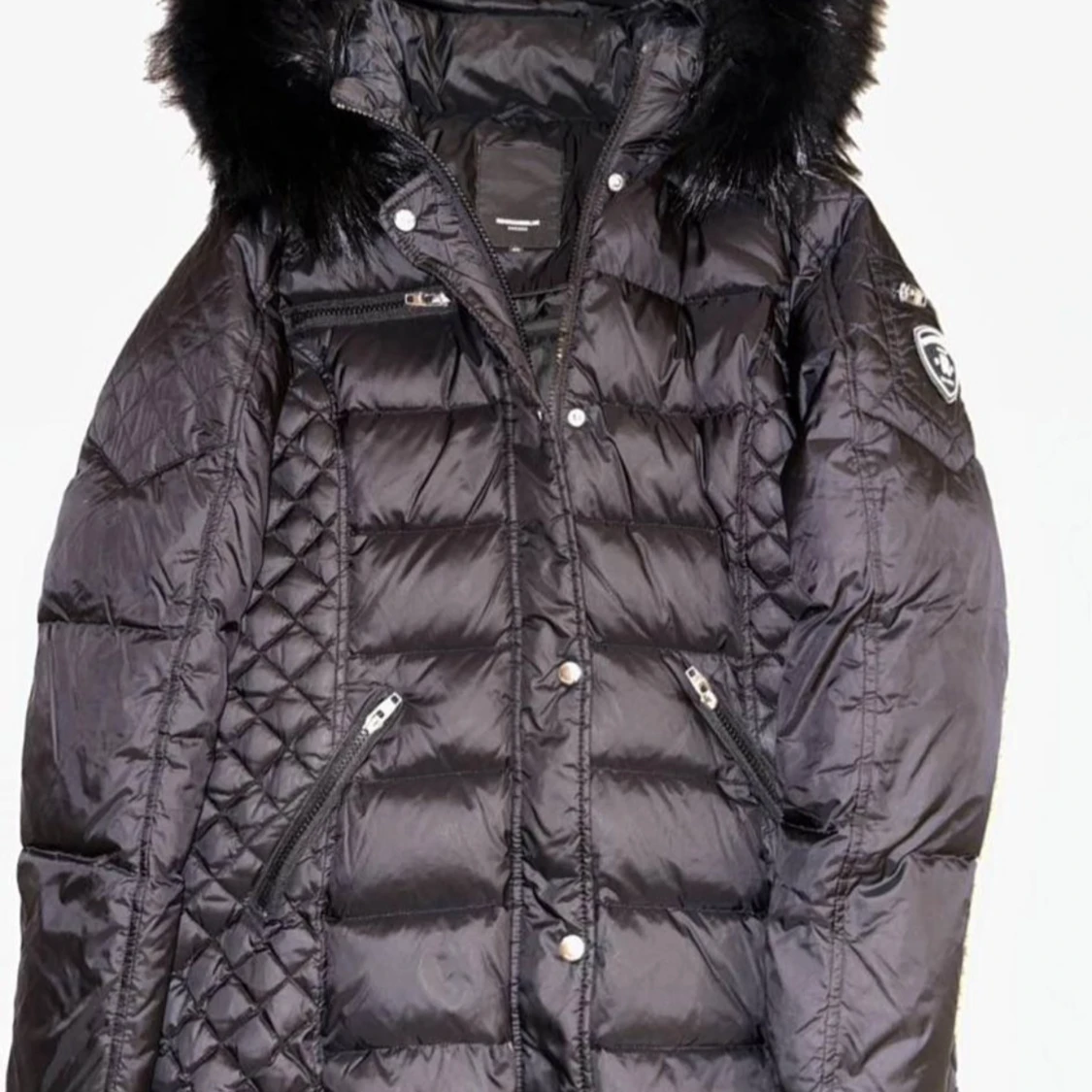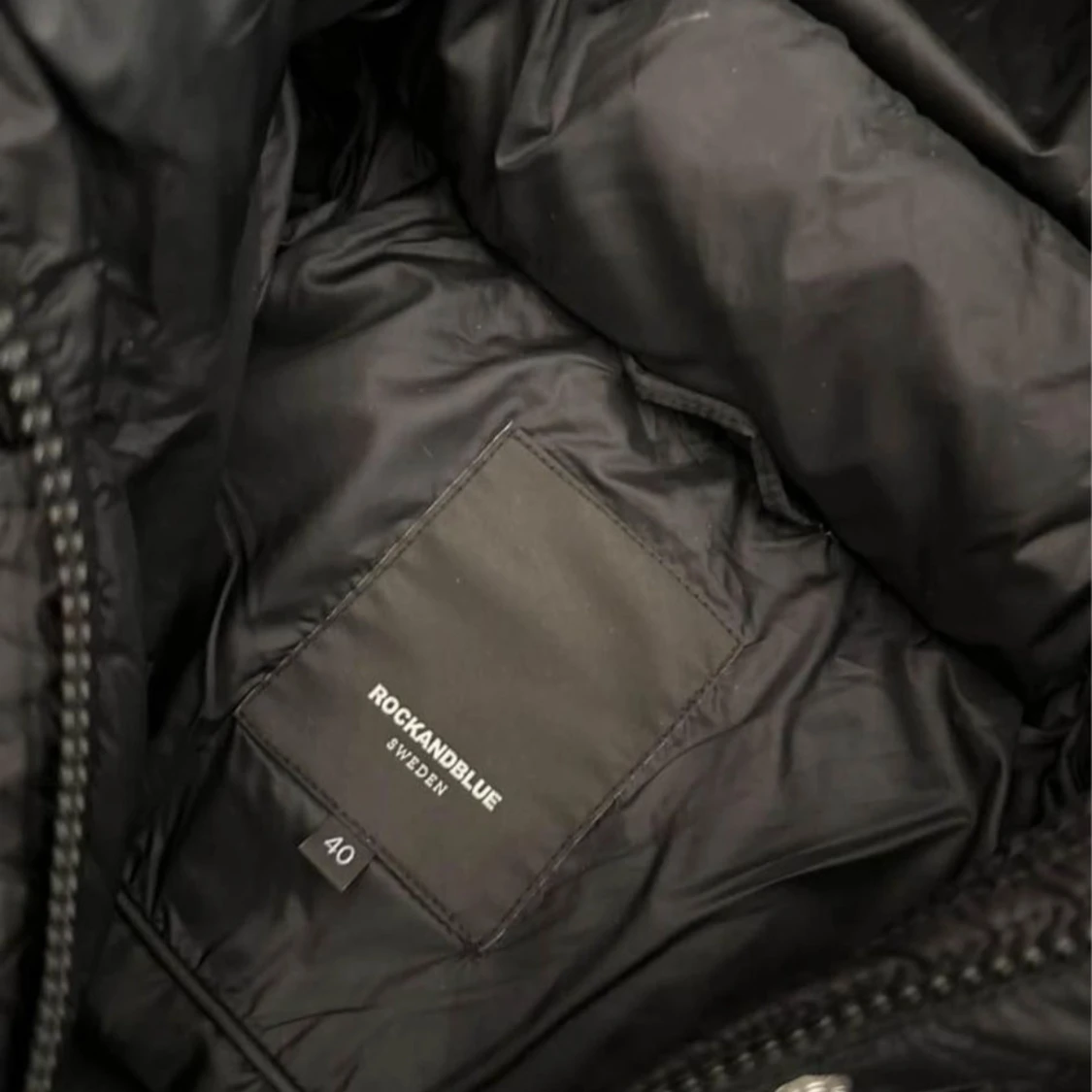 Säljer en snygg svart dunjacka från Rockandblue i storlek 40. Jackan har en fluffig pälsdetalj på huvan och quiltade mönster på sidorna. Den är perfekt för kalla vinterdagar och har både dragkedja och knappar för extra värme. Superbra skick och redo för nya äventyr! 🖤 modell Mid Beam