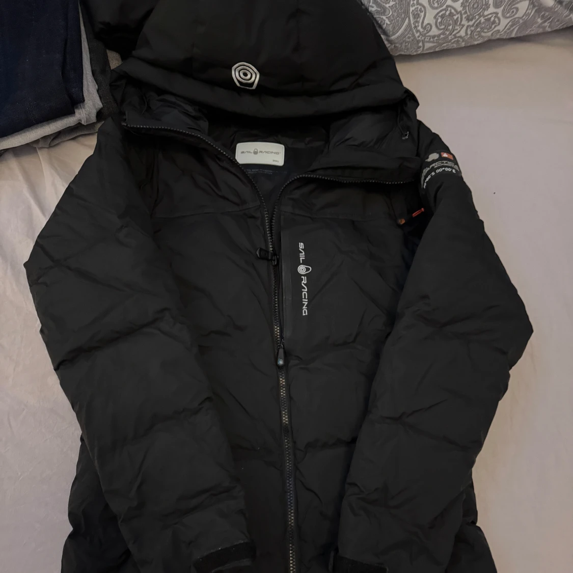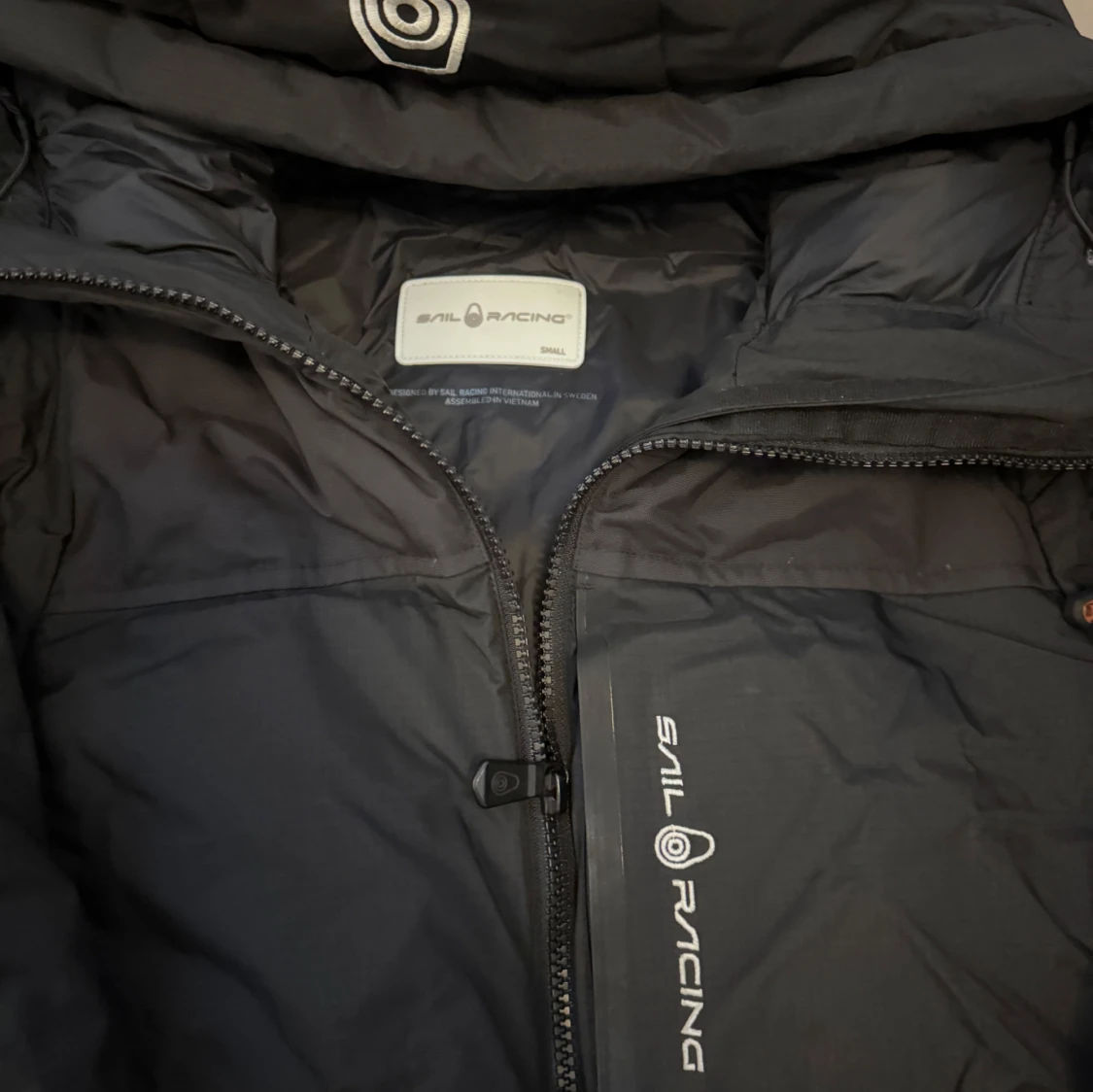Säljer en svart dunjacka från Sail Racing, modell Sail Antarctica Expedition. Jackan har huva, dragkedja framtill och logga på bröstet samt ärmen. Perfekt för kalla dagar och riktigt snygg streetstil.