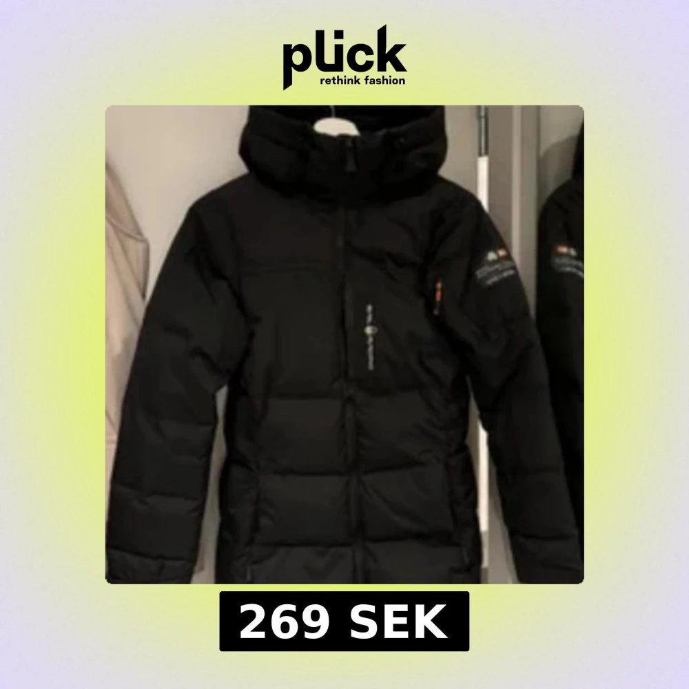 Säljer en svart dunjacka från sail racing. Jackan har en hög krage och dragkedja framtill. Perfekt för kalla dagar med sin vadderade design. Den har långa ärmar och en stilren look.