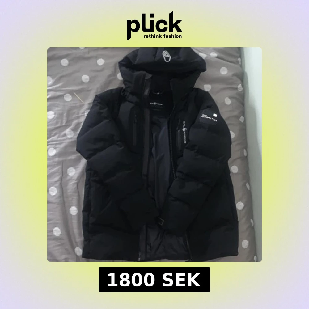 Säljer en svart dunjacka från Sail Racing med flera praktiska dragkedjor och en justerbar huva. Perfekt för kalla dagar med sin pufferdesign som håller värmen. Jackan har en stilren look med logotypdetaljer på bröstet och ärmen.