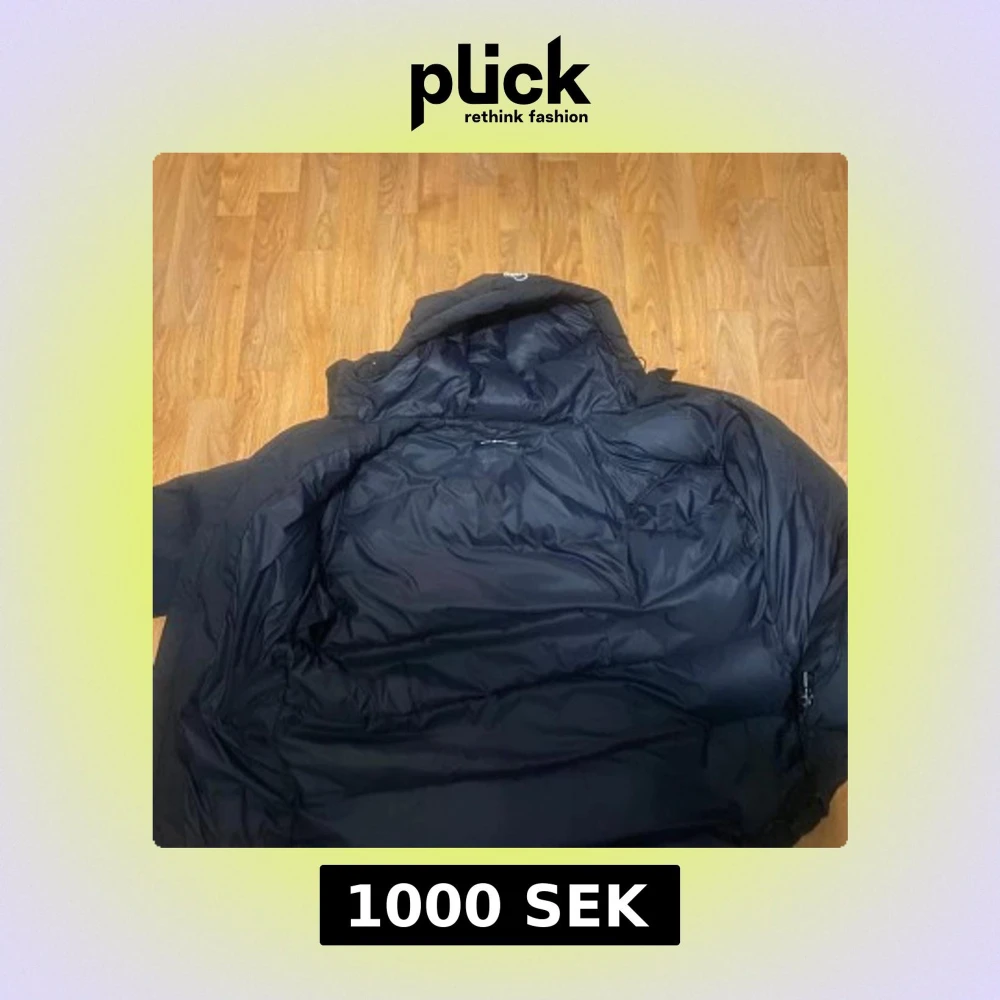 Säljer en svart dunjacka från Sailracing med huva och dragkedja. Jackan har en ficka på ärmen med en liten logotyp. Perfekt för kalla dagar.