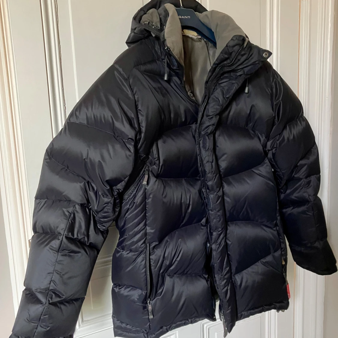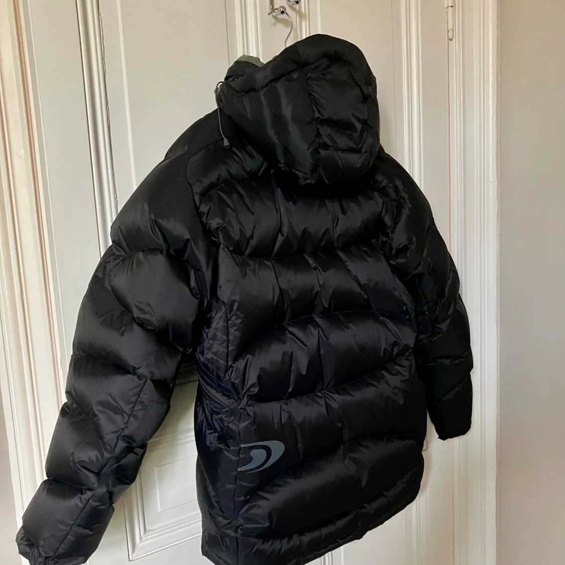 Säljer en svart dunjacka från Salomon i storlek L. Jackan är rejält vadderad, har huva och dragkedja framtill samt två sidofickor med dragkedja. Perfekt för kalla dagar och har en clean, sportig look.