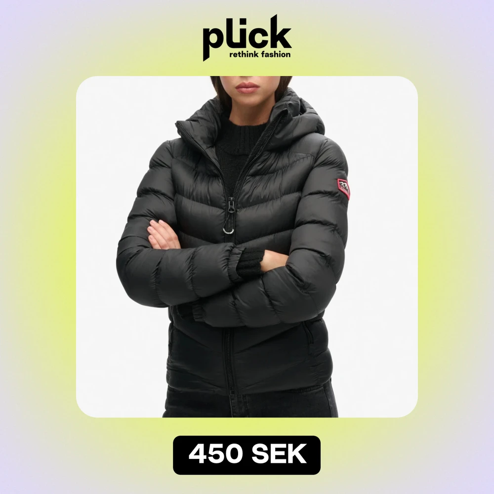 Säljer en svart dunjacka från Superdry i mycket bra skick. Jackan har en dragkedja framtill och en mysig huva. Perfekt för kalla vinterdagar med sin pufferstil och långa ärmar. Den är både snygg och praktisk för vintern!