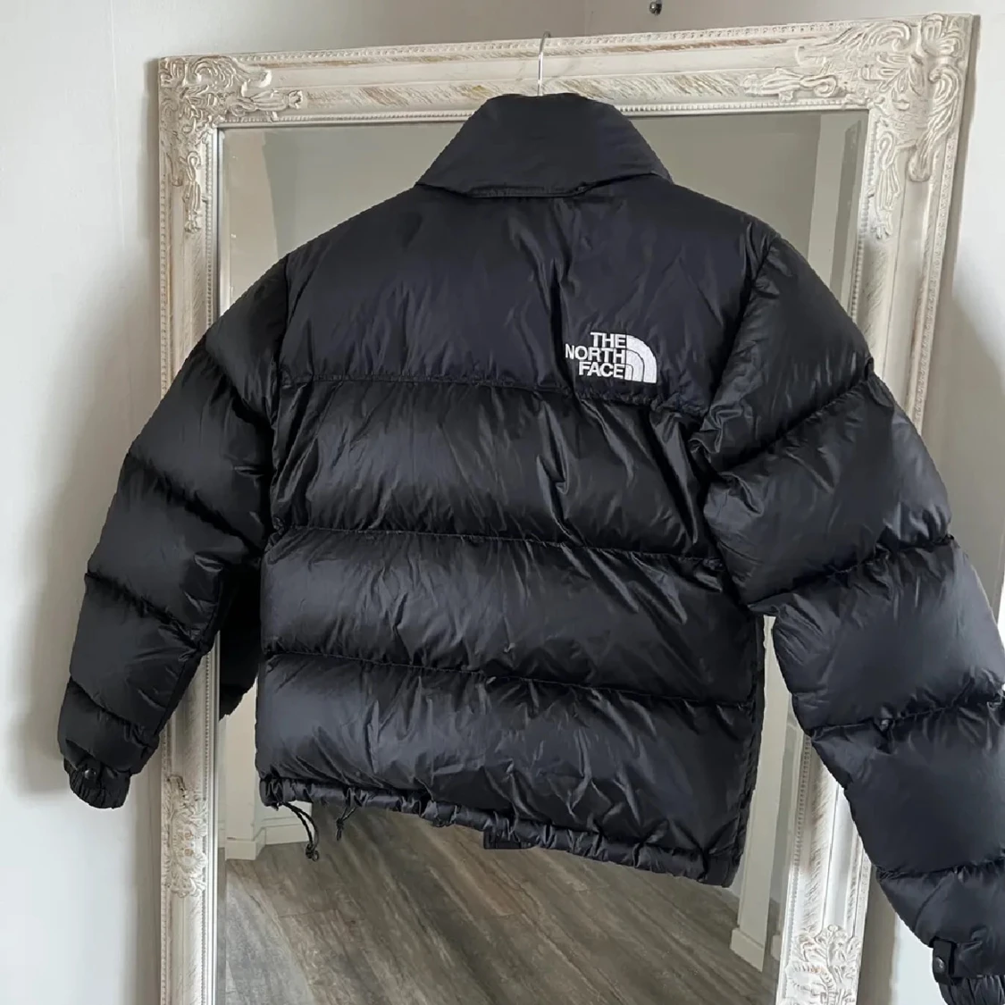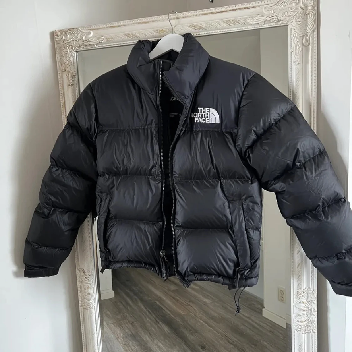 Säljer en snygg och varm svart dunjacka från The North Face. Jackan har en pufferstil med dragkedja och hög krage, perfekt för kalla vinterdagar. Är i bra skick och väl omhändertagen🖤