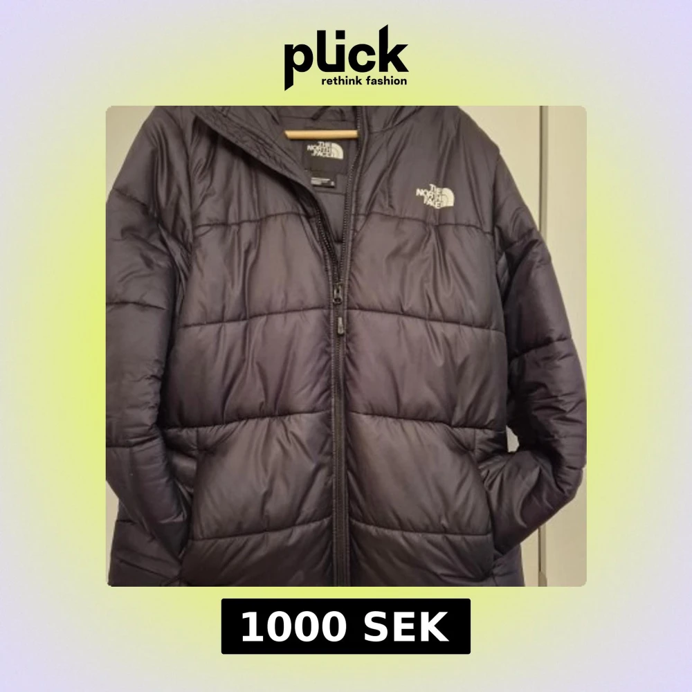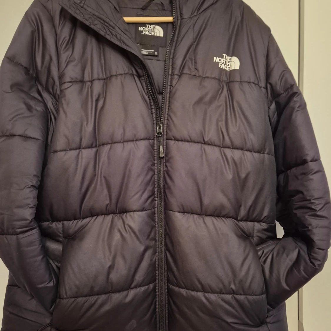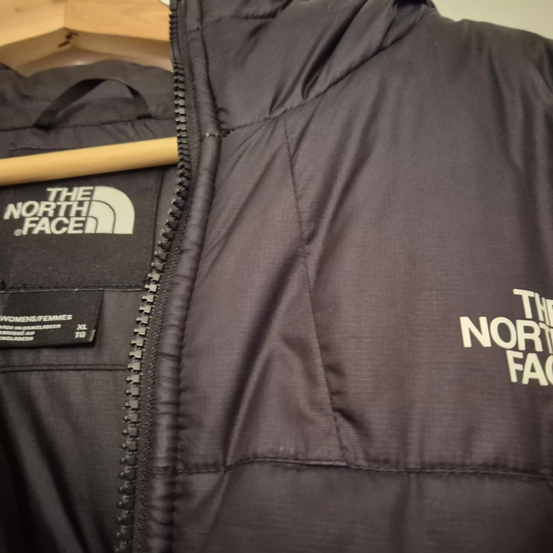 Säljer en svart dunjacka från The North Face med dragkedja och huva. Jackan har en quiltad design och är perfekt för kyliga dagar. Den har två sidofickor och logotypen på bröstet. Perfekt för vintern! 🖤