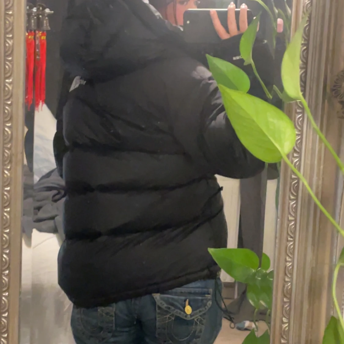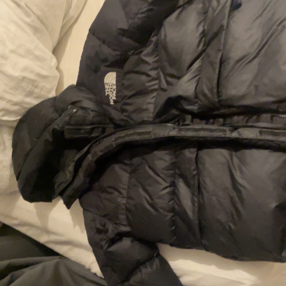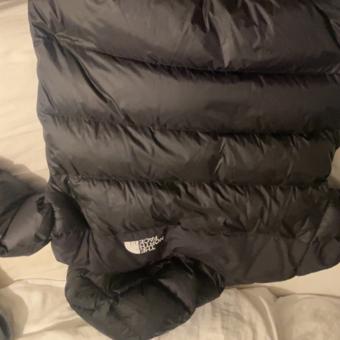 Säljer en svart dunjacka från The North Face. Jackan har en pufferdesign med dragkedja och en hög krage för extra värme. Perfekt för kyliga dagar. Storlek L.