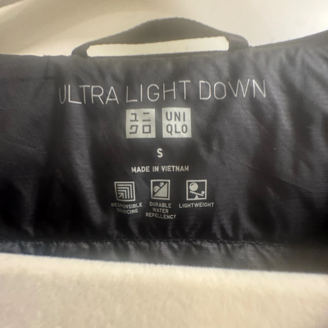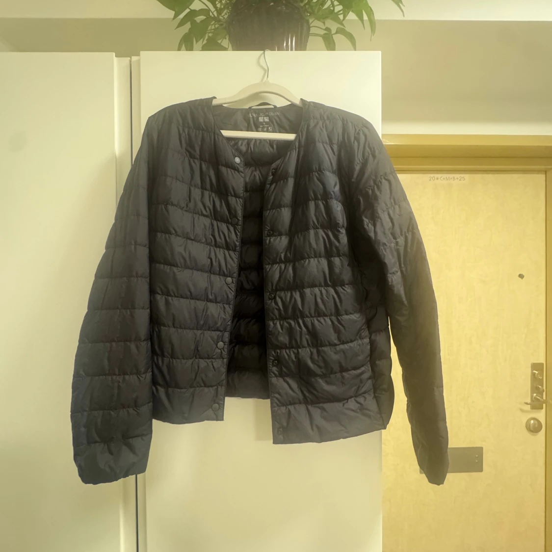 Lätt och smidig svart dunjacka från Uniqlo Ultra Light Down. Jackan har rund halsringning, tryckknappar framtill och quiltad design. Perfekt för lager-på-lager och enkel att bära med sig. Snygg minimalistisk look som funkar till det mesta.