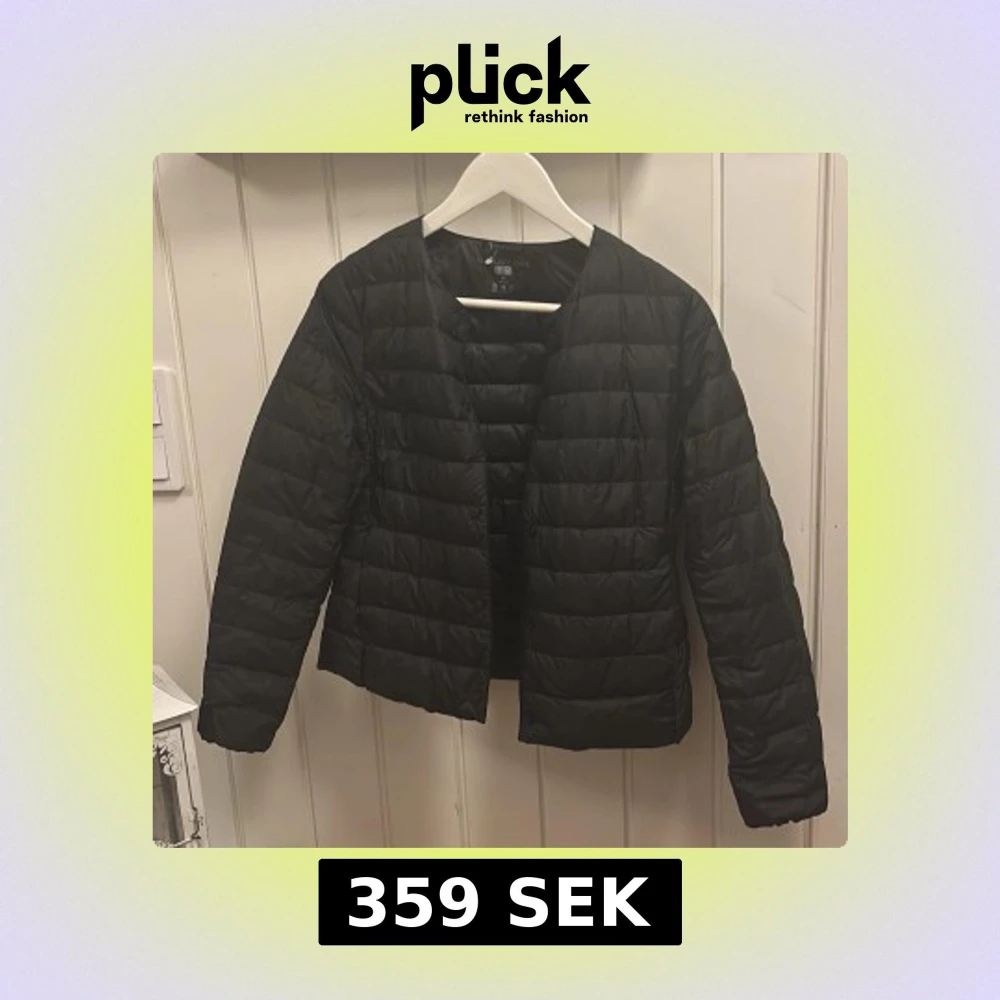 Svart, ultralätt dunjacka från Uniqlo i storlek XS. Jackan har ett quiltat mönster, rund hals och stängs med knappar framtill. Materialet är syntet. Säljer denna då den tyvärr har blivit lite för liten💗 (inget hål i jackan, jackan har fickor) jackan kostar 749kr på hemsidan men säljer för 359kr+frakt🫶🏼