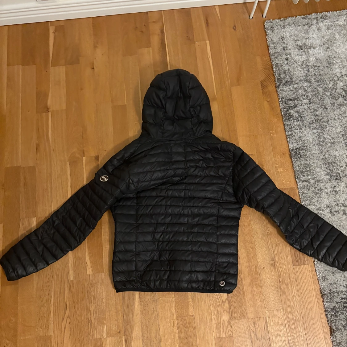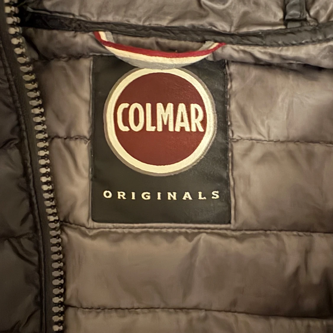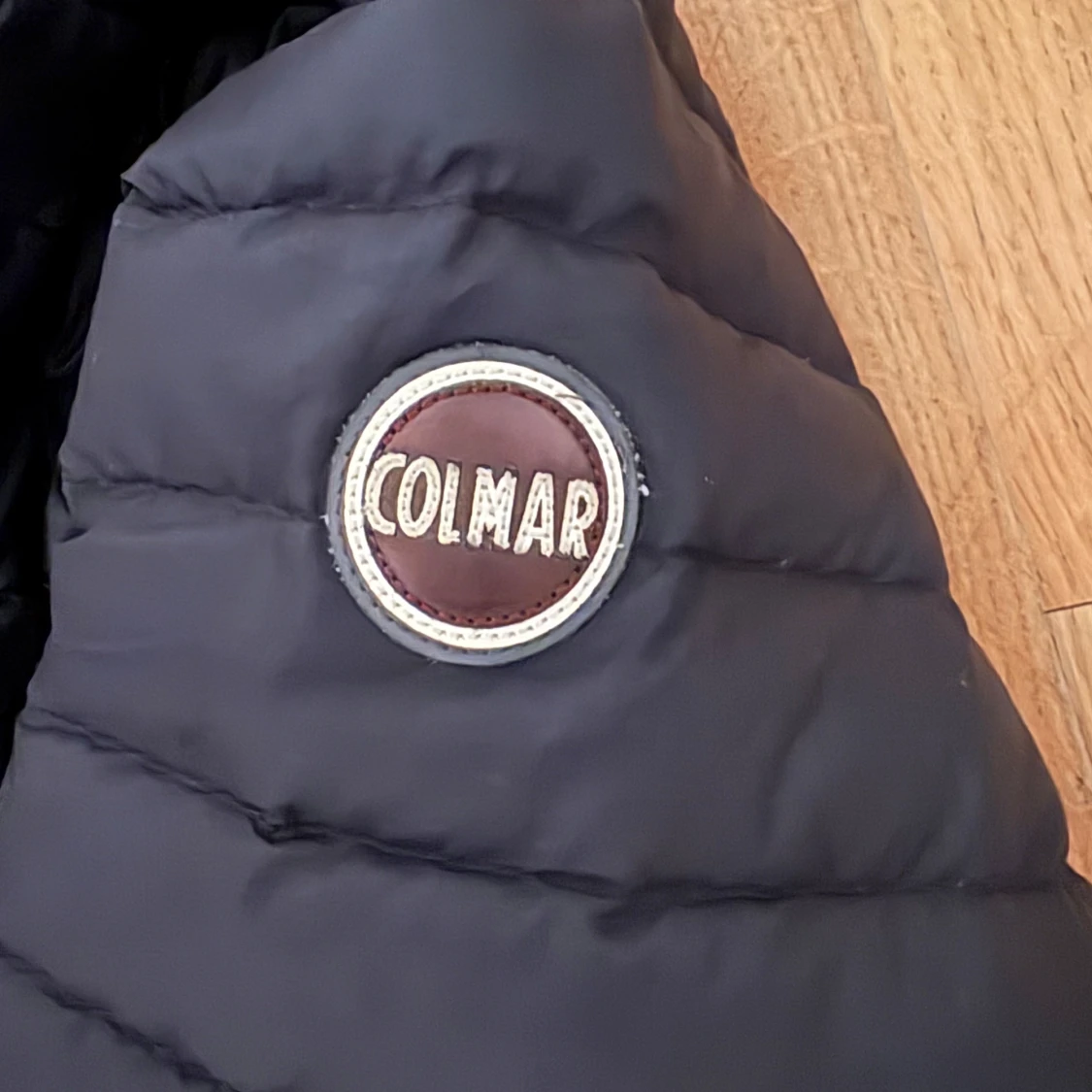 Snygg svart dunjacka från Colmar med huva och dragkedja framtill. Jackan har quiltad design, två fickor med dragkedja och Colmar-logga på ärmen. Perfekt för kyliga dagar och enkel att matcha med allt. Trasig dragkedja (går att stänga som vanligt) pris kan diskuteras