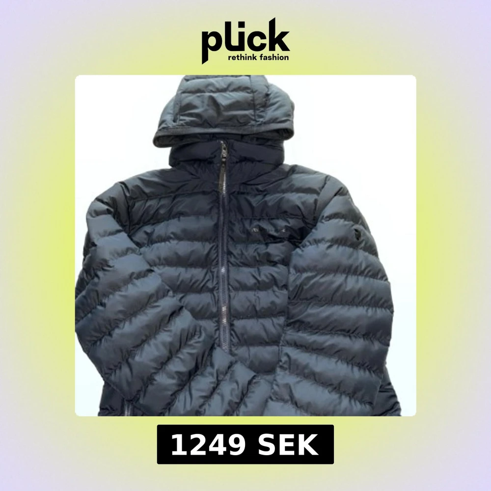 Säljer en svart dunjacka från Peak Performance med huva och dragkedja framtill. Jackan har quiltad design och diskret logga på bröstet samt ärmen. Perfekt för kyliga dagar och enkel att matcha med olika outfits.