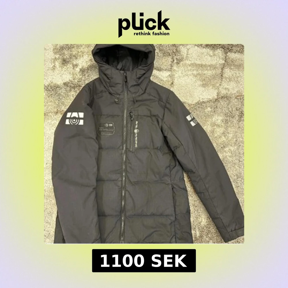 Säljer en svart dunjacka från sail racing med huva och dragkedja. Jackan har logotyp på bröstet och ärmarna samt en bröstficka med dragkedja. Perfekt för kalla dagar och har en stilren design.
