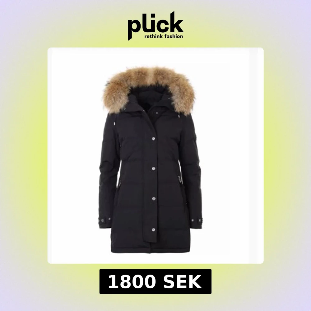 Snygg svart dunjacka från Hollies med fluffig päls på huvan . Jackan har långa ärmar, dragkedja och knappar framtill samt praktiska fickor med dragkedja. Perfekt för kalla vinterdagar och har en längre, figurnära passform. Köpt för 5000 använt 1 vinter