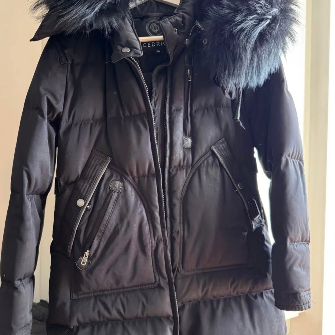 Snygg svart dunjacka från Cedrico med en äkta stor pälsdetalj på huvan. Jackan har dragkedja och knappar framtill samt praktiska fickor med dragkedja. Perfekt för kalla dagar.
