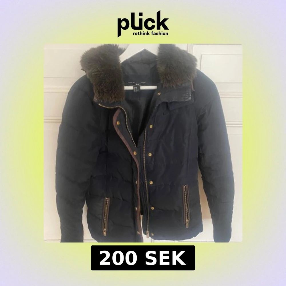 Säljer en snygg svart dunjacka från hm med en mysig pälsdetalj på kragen.