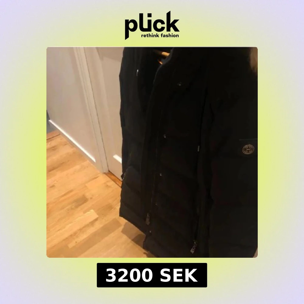 Snygg svart dunjacka med pälsdetalj på huvan. Jackan har en stilren design med långa ärmar och knappar framtill. Perfekt för kalla vinterdagar. Pris kan disskuteras vid snabb affär