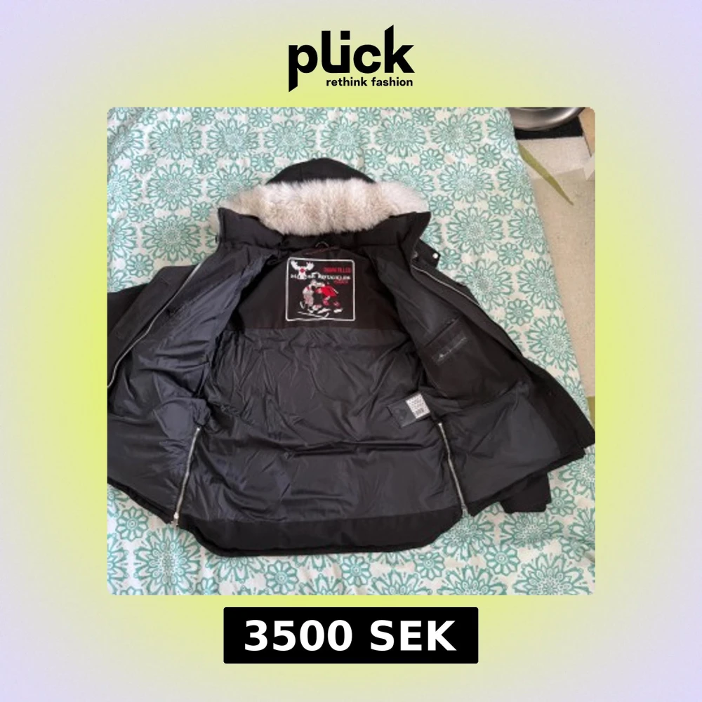 Säljer en svart dunjacka från Moose Knuckles med snygg pälskantad huva. Jackan har flera dragkedjor, logga på ärmen och innerficka med dragkedja. Perfekt för kalla dagar och har en riktigt schysst streetstil. Fodrad och med detaljer i silver.