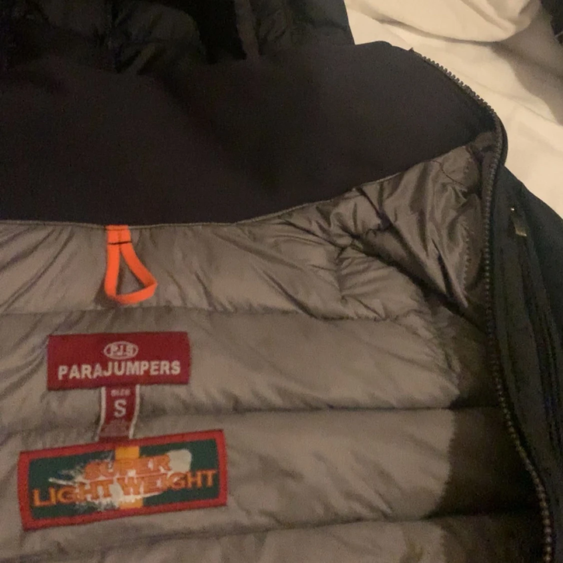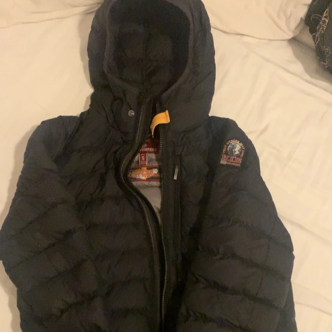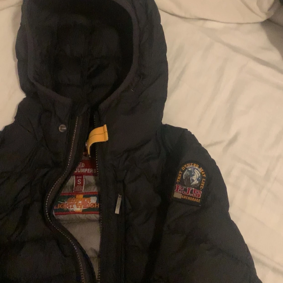 Säljer en svart dunjacka från Parajumpers i storlek S. Jackan har huva, klassisk patch på ärmen och cool gul detalj vid dragkedjan. Insidan är grå och jackan är quiltad för extra värme. Perfekt för kalla dagar och riktigt snygg streetstil.