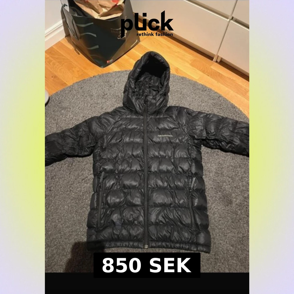 Svart dunjacka från Peak Performance i storlek 170. Jackan har huva, två sidofickor med dragkedja och quiltad design. Perfekt för kalla dagar med sin fluffiga och stilrena look. Materialet är polyester och dun, vilket gör den både lätt och varm. PRISK KAN DISKUTERAS🤝
