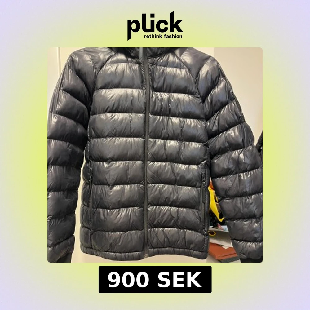 Snygg svart dunjacka från Peak Performance med horisontella sömmar, huva och dragkedja framtill. Jackan har en stilren look med logga på ärmen och är perfekt för kalla dagar. Sparsamt använd, passar både killar och tjejer! Storlek 170, köpt för 2000, pris kan diskuteras