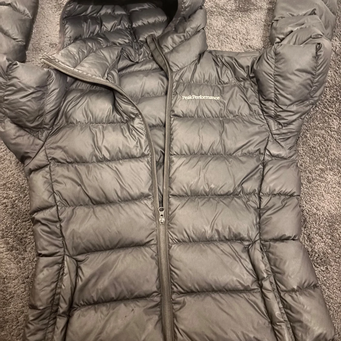 Säljer en svart dunjacka från Peak Performance i storlek S. Jackan har huva, quiltad design och dragkedja framtill. Perfekt för kalla dagar och har en clean look som funkar till de flesta stilar. Loggan syns på bröstet och materialet är syntet med dunfyllning. De finns tecken på användning, men inga defekter!
