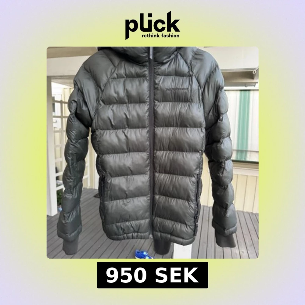 Snygg mörk grön dunjacka från Peak Performance i storlek XS. Jackan har huva, dragkedja framtill och två fickor med dragkedja. Puffig och varm modell med ribbade muddar vid ärmslut. Perfekt för kalla dagar och stilren look.