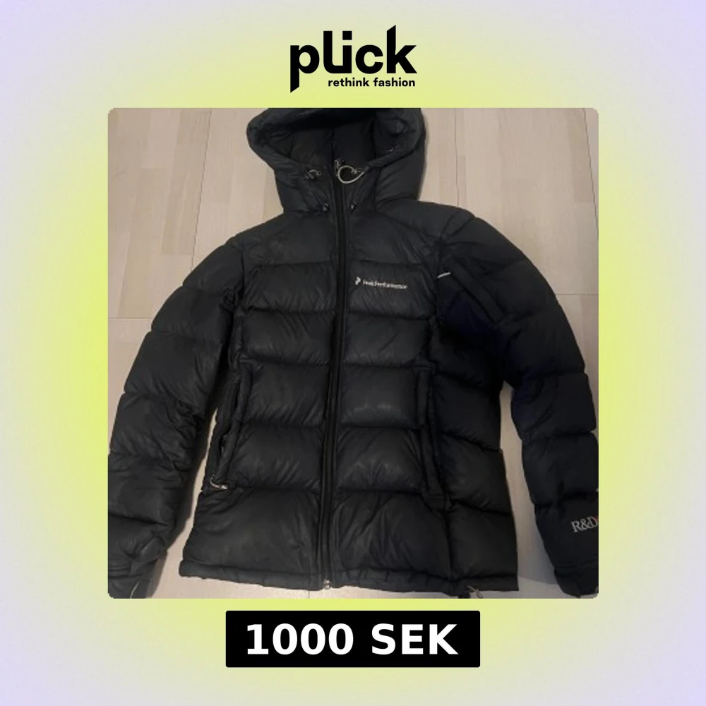 Svart dunjacka från Peak Performance i storlek XS. Den är i bra skick förutom att den högra fickan ej går att stänga. I övrigt super fin och varm jacka
