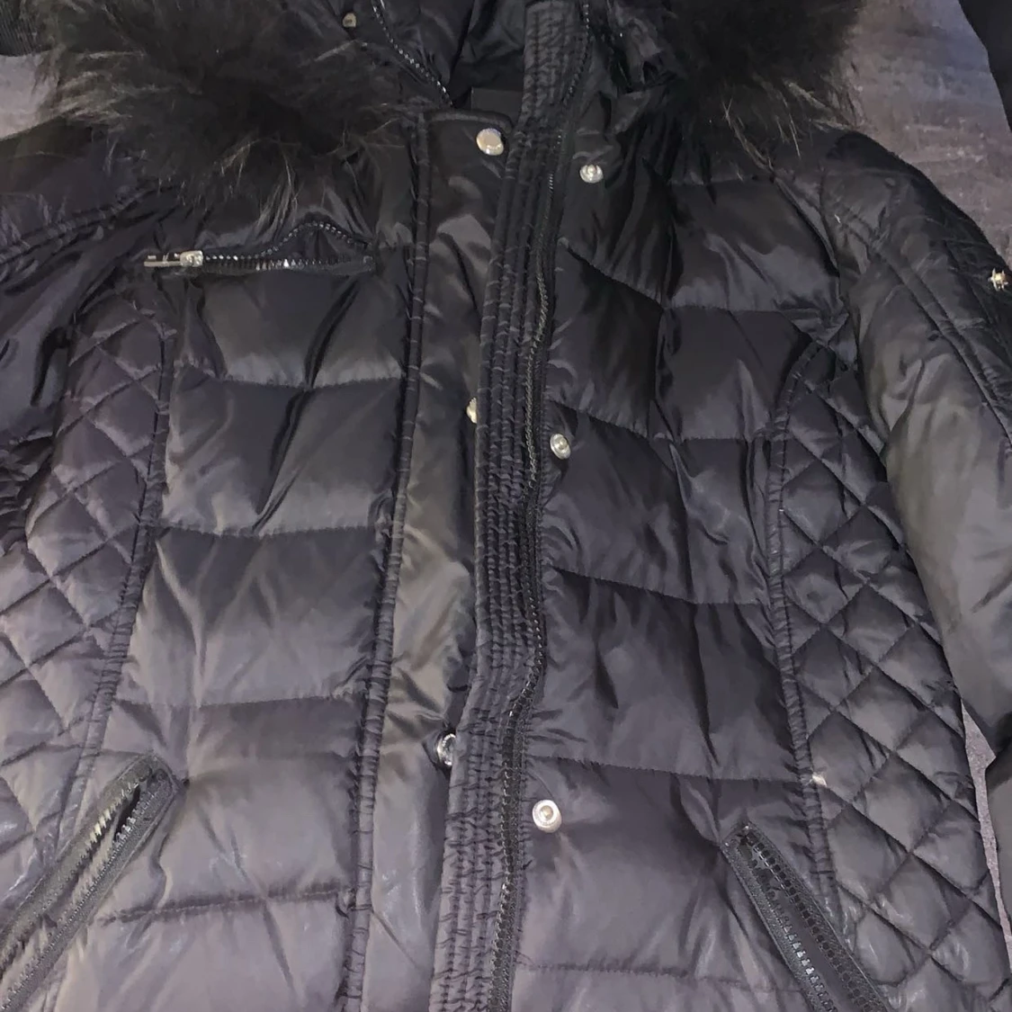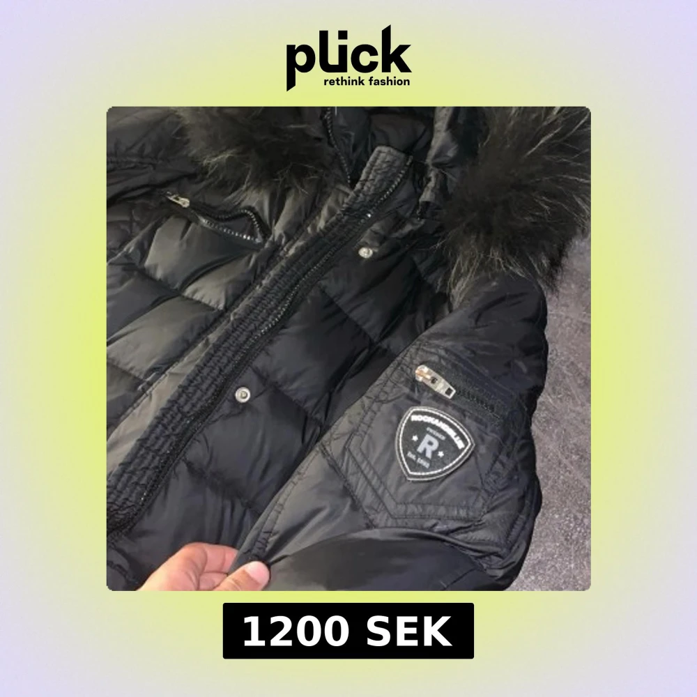 Snygg svart dunjacka från Rockandblue med quiltade detaljer och stor huva med fuskpäls. Jackan har flera dragkedjefickor, Rockandblue-logga på ärmen och en schysst, puffig look. Perfekt för kalla dagar när du vill hålla stilen.