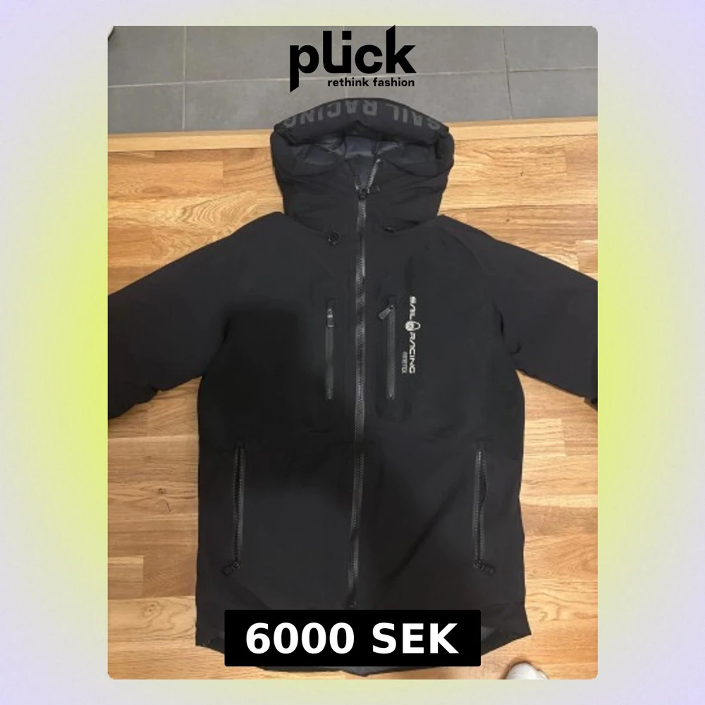 Svart dunjacka från Sail Racing med Gore-Tex, huva och flera dragkedjeförsedda fickor. Jackan har stilren design med logga på bröstet och ryggen, samt justerbar huva. Materialet är nylon, polyester och dun, vilket gör den både varm och tålig mot väder. Vid snabb äffär kan pris diskuteras. Storlek S men passar även M