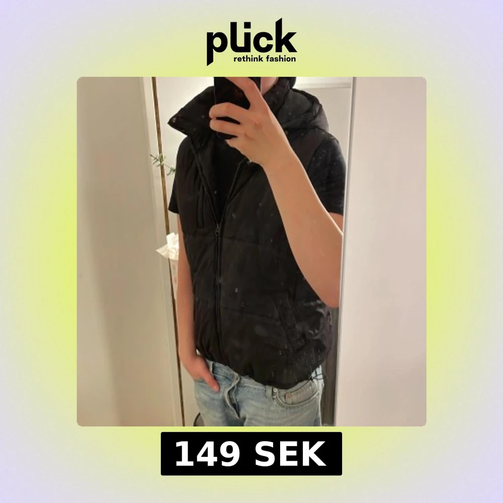 Svart dunväst från H&M Sport med hög krage och avtagbar huva. Västen har quiltad design, dragkedja framtill. Skick 7/10. Riktigt fräsch, Storlek L men passar mig som S. Hör av dig vid minsta fundering och pris kan diskuteras vid snabb affär.