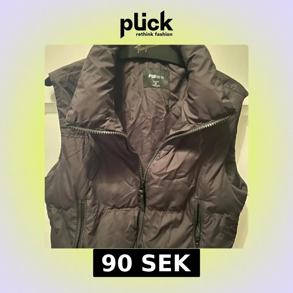 Skriv för bild på. Svart dunväst från FB Sister i storlek S. Västen har en dragkedja framtill och två praktiska fickor med dragkedja.