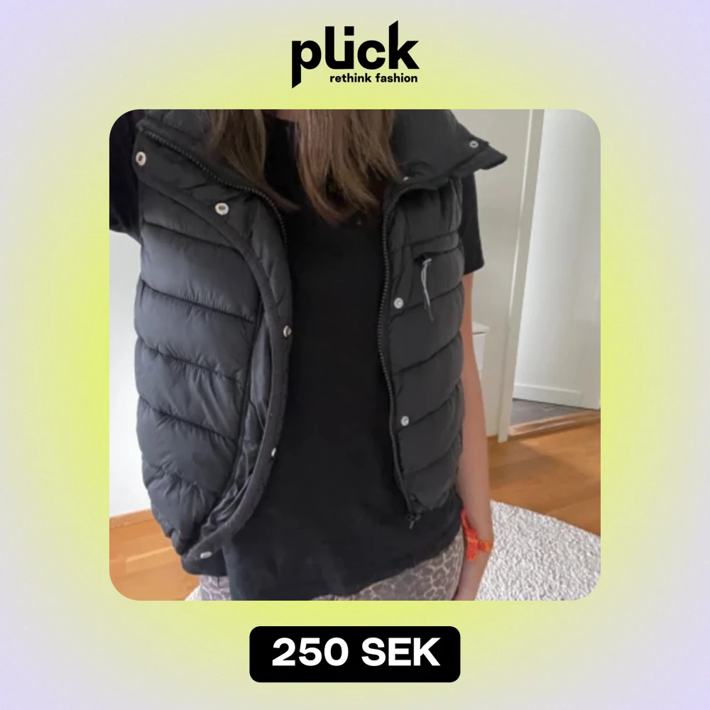 Säljer en svart dunväst som är perfekt för höst och vinter. Västen har en dragkedja och knappar framtill, vilket gör den både praktisk och snygg. Den är i nyskick och passar bra till både vardag och fest. Västen är normal i passformen och har en quiltad design som ger extra värme och stil.