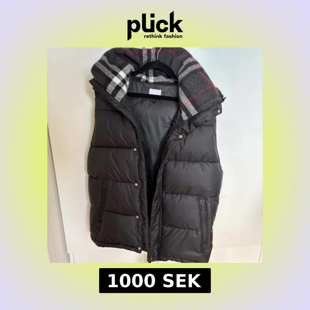 Säljer en svart dunväst från Burberry med klassiskt rutigt foder i huvan och två dragkedjefickor framtill. Västen har en hög krage och Burberry-logga på bröstet. Varm och skön till vintern men passar även jätte bra till sommaren, vår och höst, passar tyvärr inte längre
