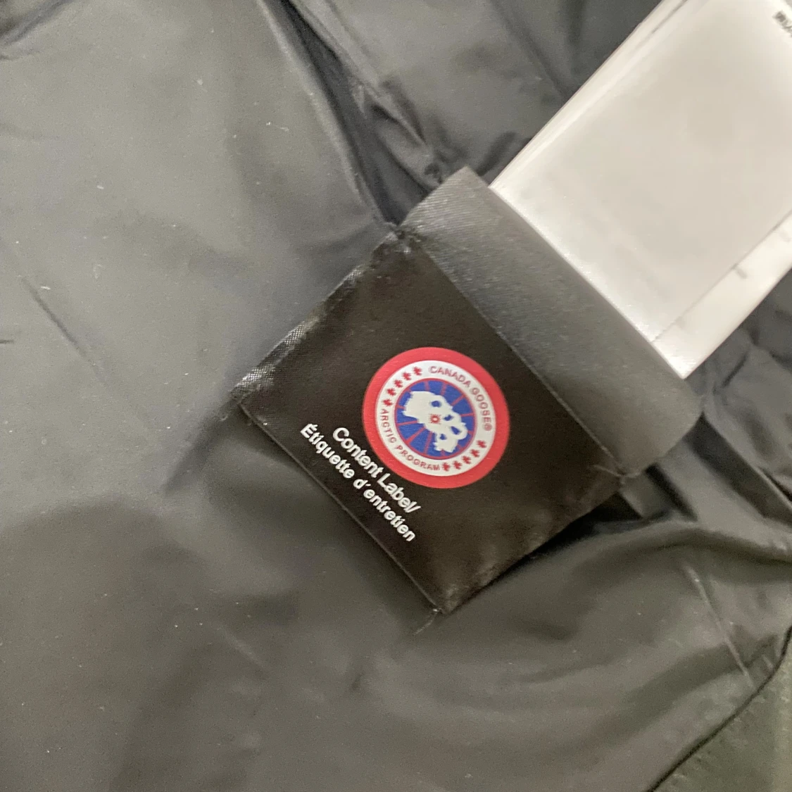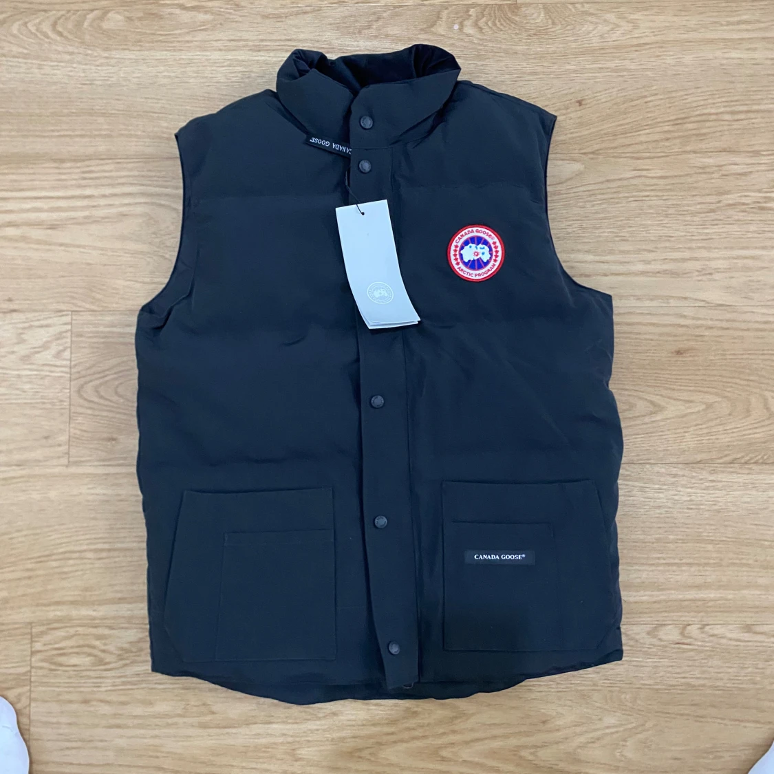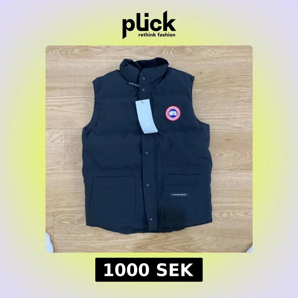 Svart dunväst från Canada Goose med klassisk logopatch på bröstet. Västen har hög krage, två stora framfickor och knäppning med tryckknappar. Perfekt för kalla dagar och har en stilren, clean look som funkar till många outfits.