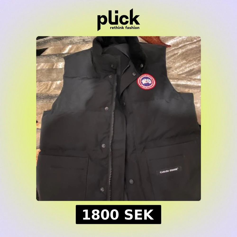 Svart dunväst från Canada Goose med hög krage, två stora fickor framtill och klassisk logotyp på bröstet. Västen har dragkedja och tryckknappar samt diskret Canada Goose-märke på ena fickan. Perfekt för lager-på-lager under kyliga dagar.
