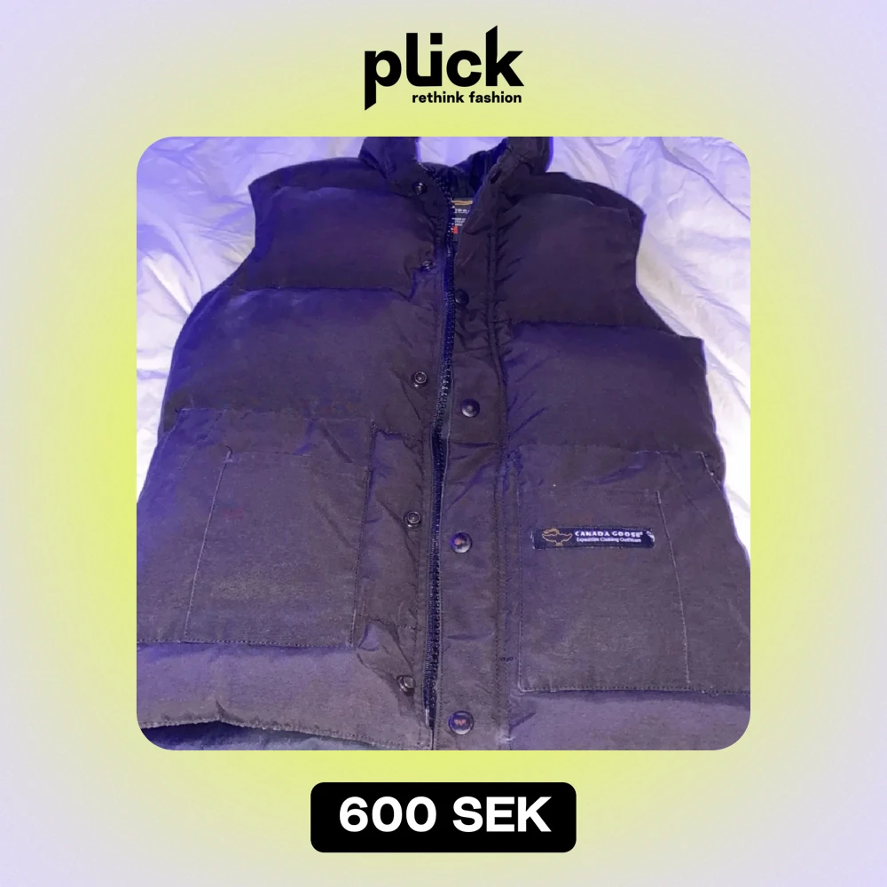 Säljer en svart dunväst från Canada Goose i mycket bra skick. Västen har en dragkedja och knappar framtill samt två praktiska fickor. Perfekt för kyliga höst- och vinterdagar. Passar både till vardags och lite finare tillfällen.