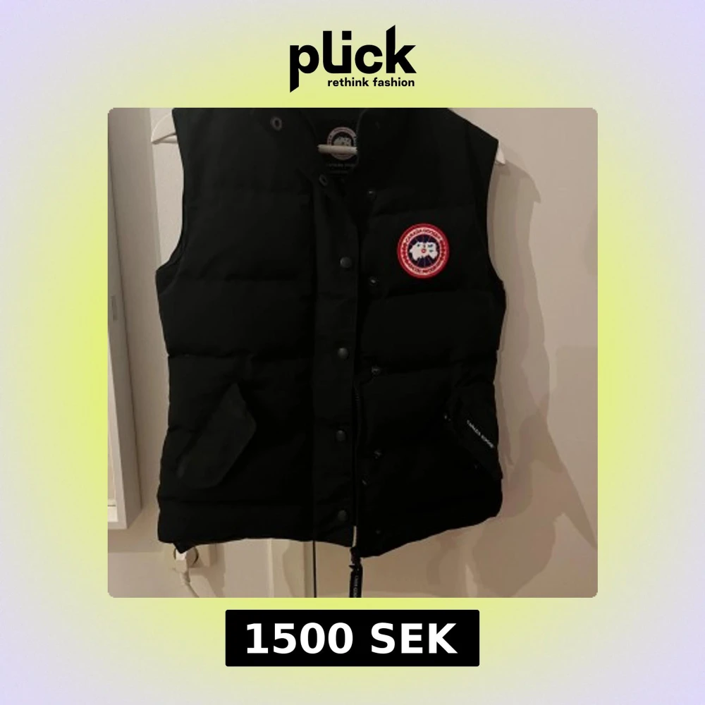 Säljer en svart dunväst från Canada Goose med knappar och dragkedja. Västen har en klassisk design med en broderad logotyp på bröstet. Perfekt för kyliga dagar. Inga fel pris går o diskuteras vid snabb affär
