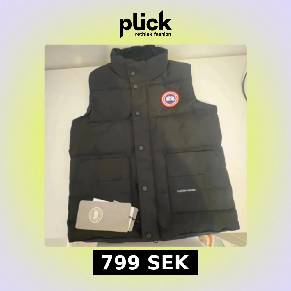 Svart dunväst från Canada Goose med hög krage, två stora fickor framtill och klassisk logotyp-patch på bröstet. Västen har tryckknappar och är perfekt för lager-på-lager. Snygg och stilren design som funkar till det mesta.