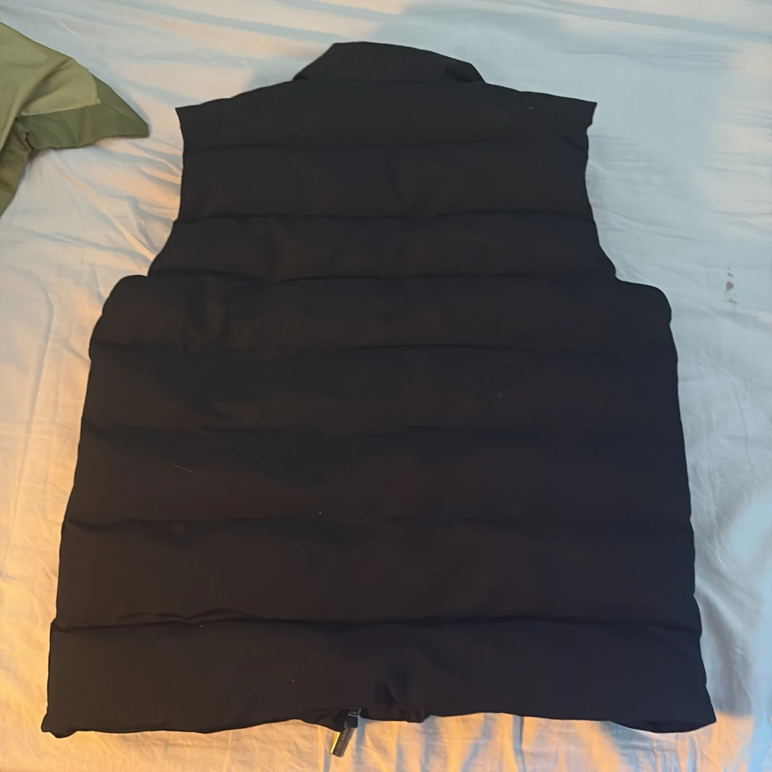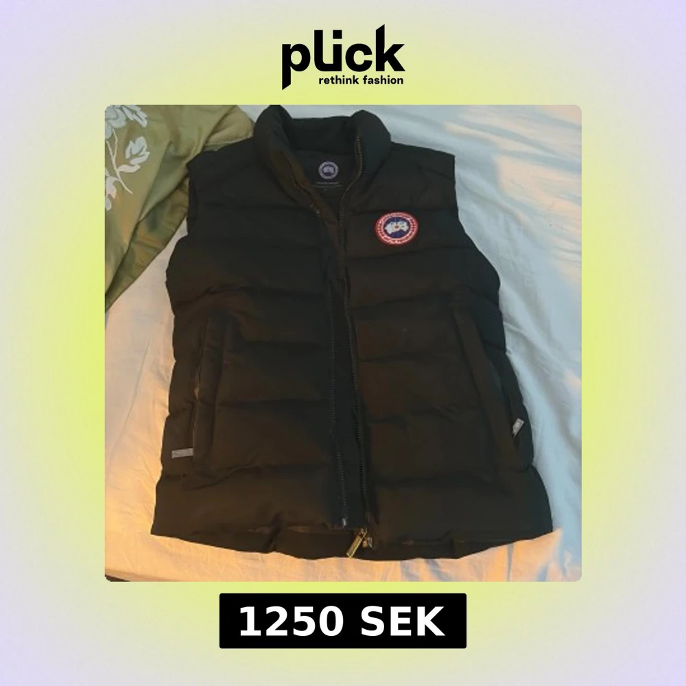 Svart dunväst från Canada Goose med klassisk logga på bröstet. Västen har hög krage, två fickor med dragkedja och quiltad design.OBS ett hål i höger ficka så lägg inget litet där som lätt kan föesvinna! Perfekt för lager-på-lager och håller dig varm under kyliga dagar.