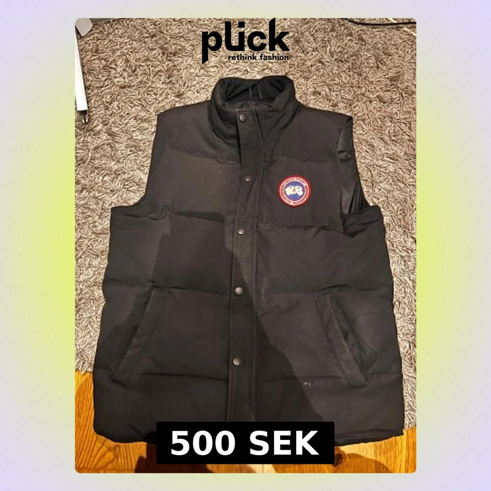 Svart dunväst från Canada Goose med klassisk Arctic Program-logga på bröstet. Västen har hög krage, två snedställda fickor och knäppning med tryckknappar framtill. Materialet är slitstark polyester och dunfyllning som håller dig varm under kyliga dagar.