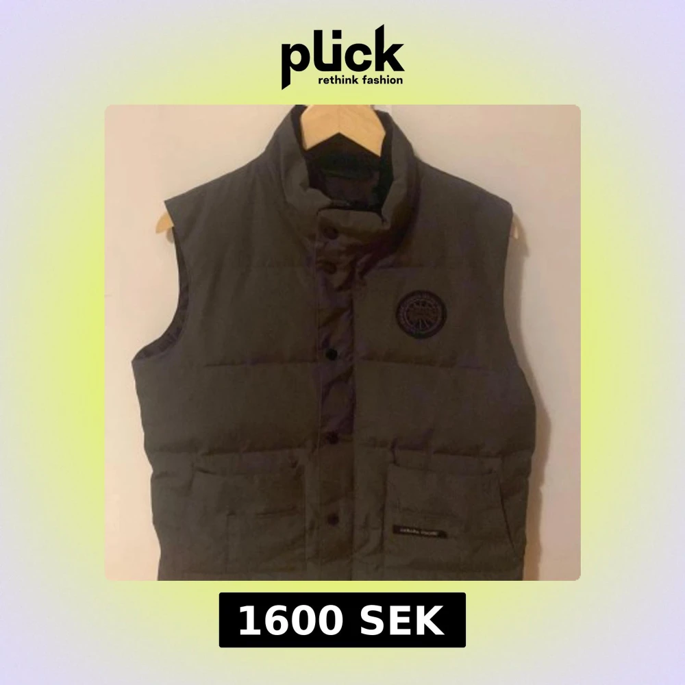 Säljer en svart dunväst från Canada Goose med hög krage och knappar framtill. Västen har en broderad logotyp på bröstet och praktiska fickor. Perfekt för kyliga dagar. Sick 10/10