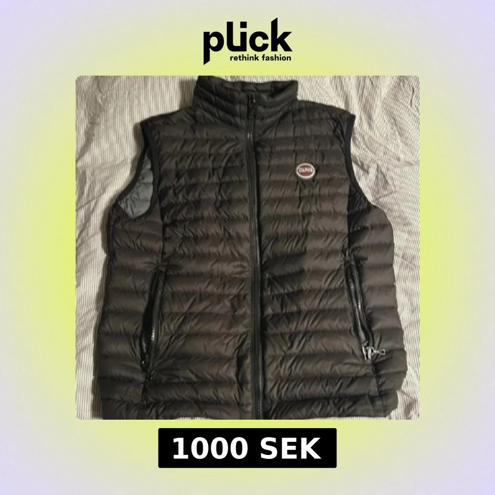 Säljer en svart dunväst från Colmar med quiltad design och hög krage. Västen har två fickor med dragkedja och Colmar-logga på bröstet. Perfekt att slänga över en hoodie eller tröja när det är kyligt ute. Stängs med dragkedja framtill.