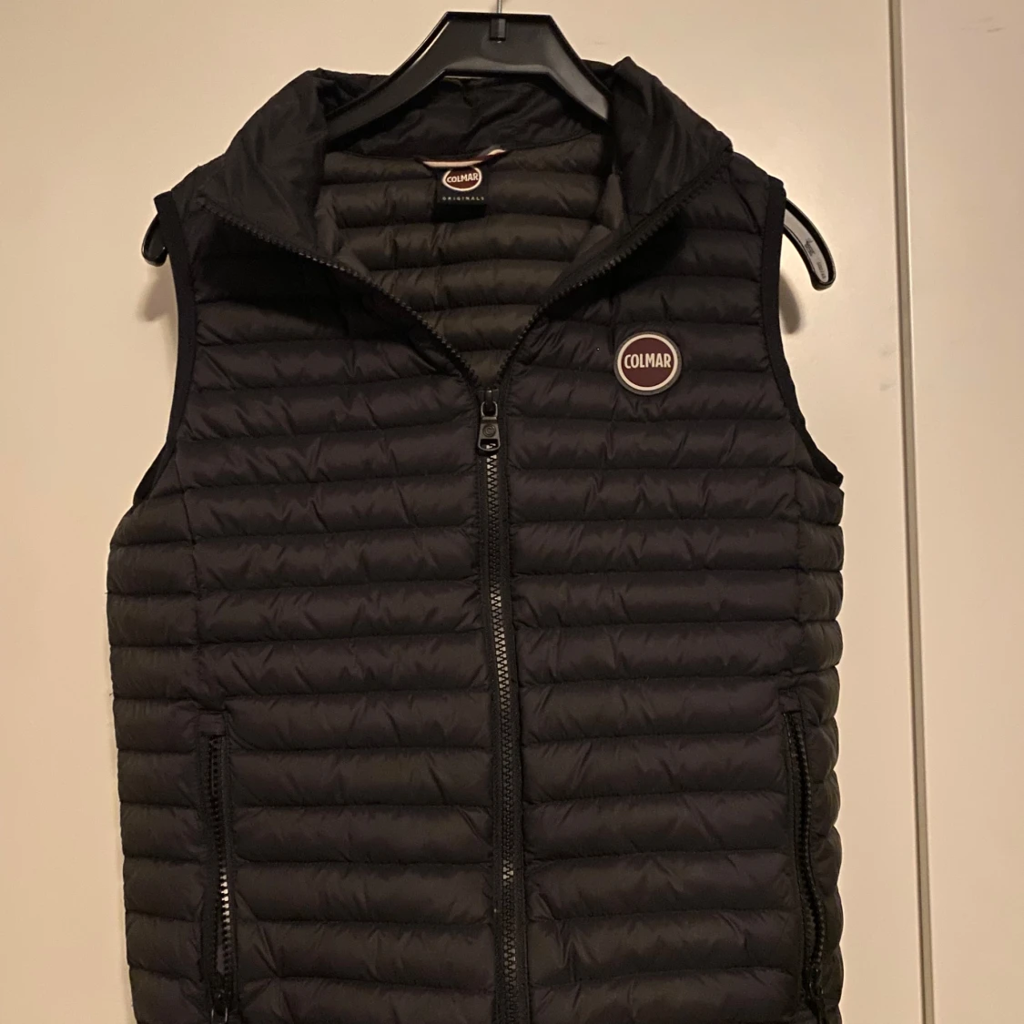 Säljer en snygg svart dunväst från Colmar i mycket bra skick. Västen har en dragkedja framtill och är perfekt för höst och vår. Den är quiltad och har en normal passform. Perfekt för lager-på-lager-stil!