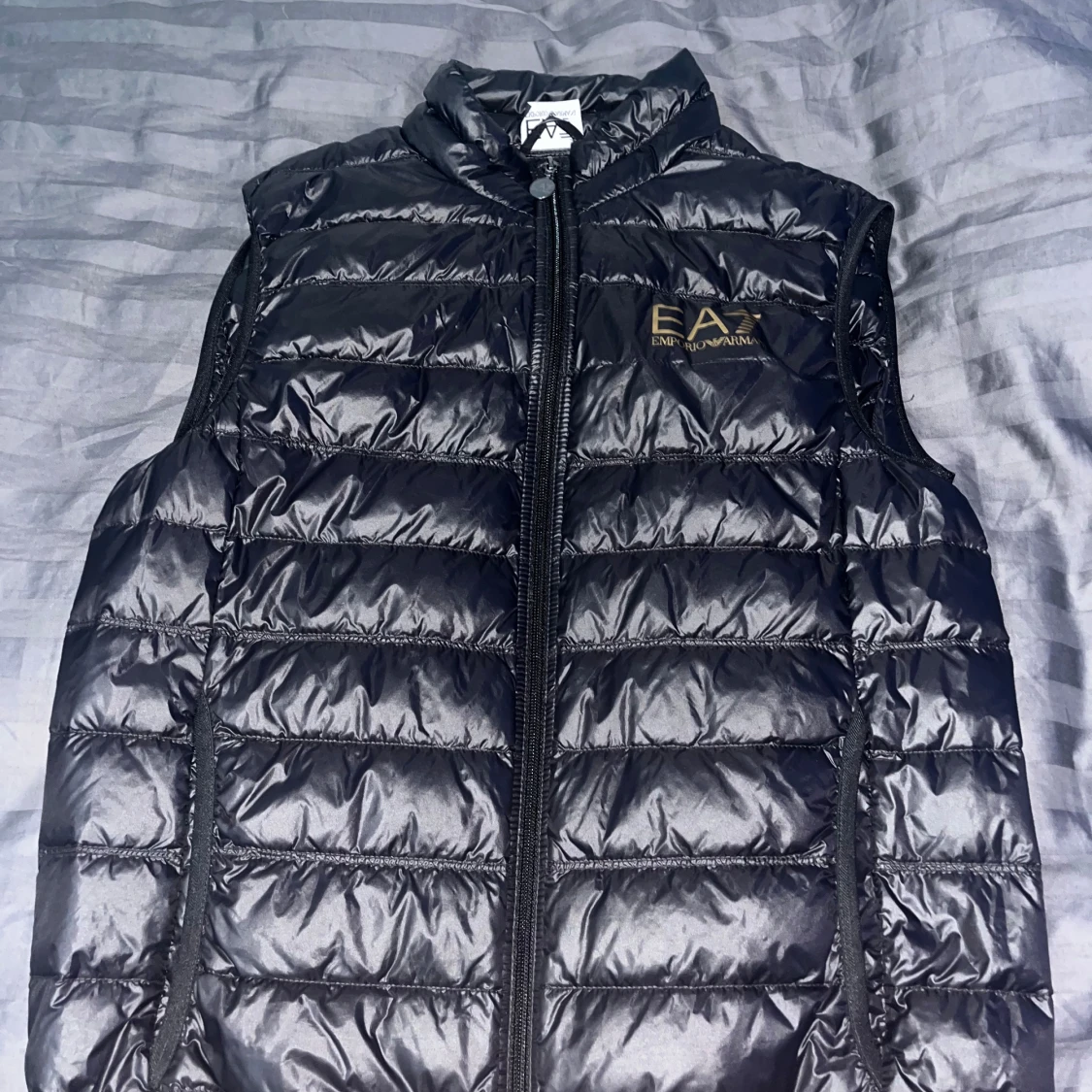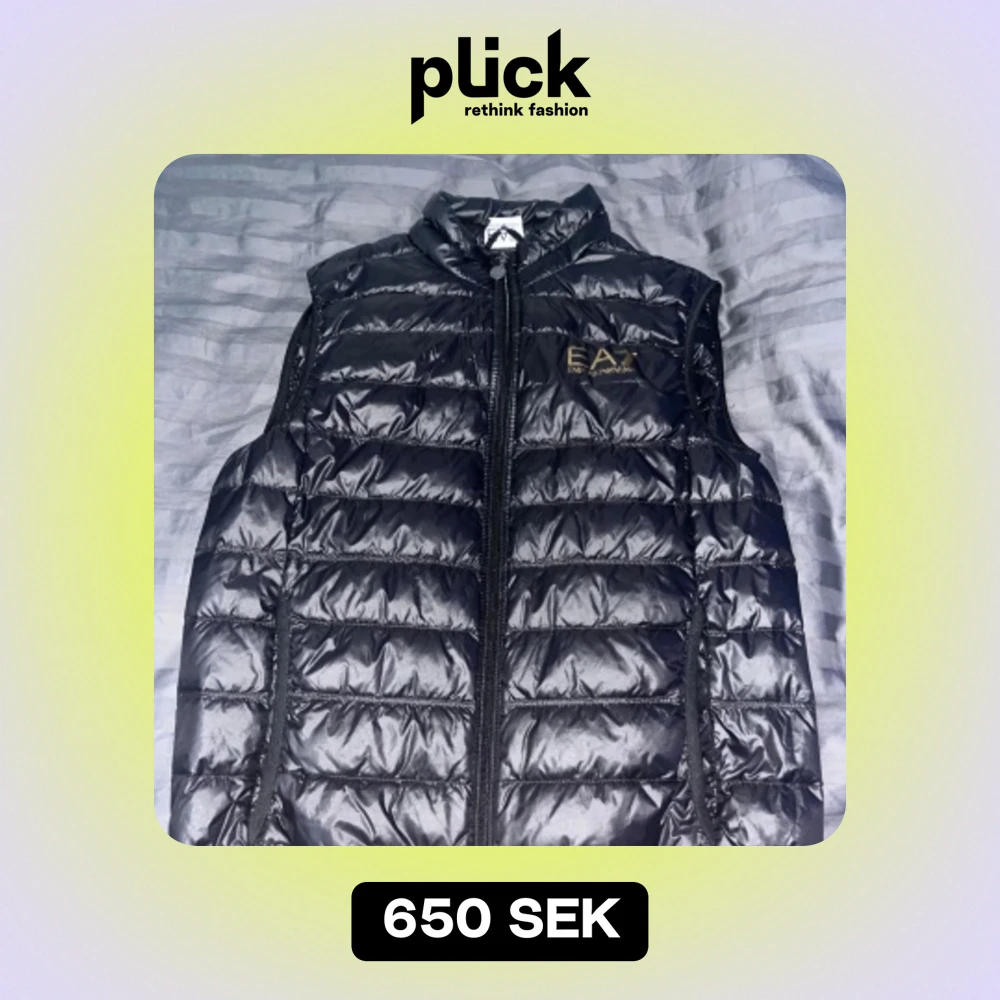 Säljer en snygg svart dunväst från EA7 Emporio Armani. Västen är quiltad och har en dragkedja framtill. Perfekt för höst och vinter, och den är i nyskick. Västen har en normal passform och är riktigt bekväm att ha på sig. Passar både till vardags och lite finare tillfällen. Storlek S.