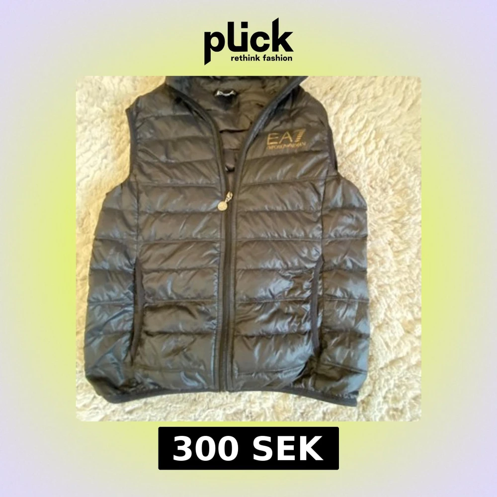 Snygg svart dunväst från Emporio Armani EA7 med dragkedja framtill och två fickor. Västen har diskret logga på bröstet och är lätt vadderad för extra värme. Perfekt för lager-på-lager-stil under kyliga dagar.