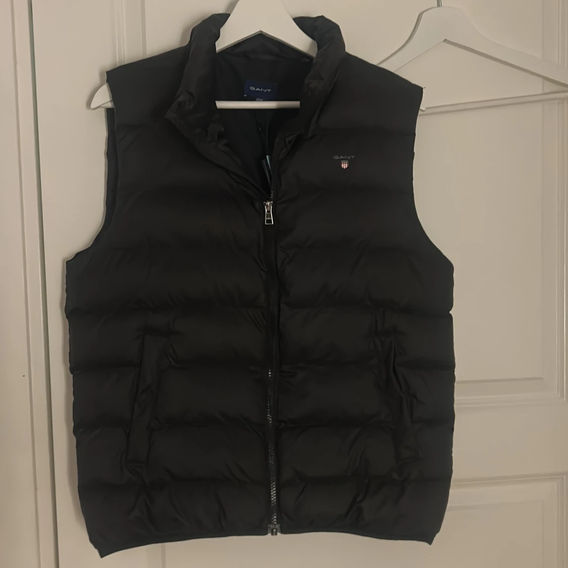 Helt oanvänd svart dunväst från GANT. Västen har dragkedja framtill och diskret GANT-logga. Perfekt att slänga över en hoodie för extra värme. Stilren och enkel look. Priset kan diskuteras💕