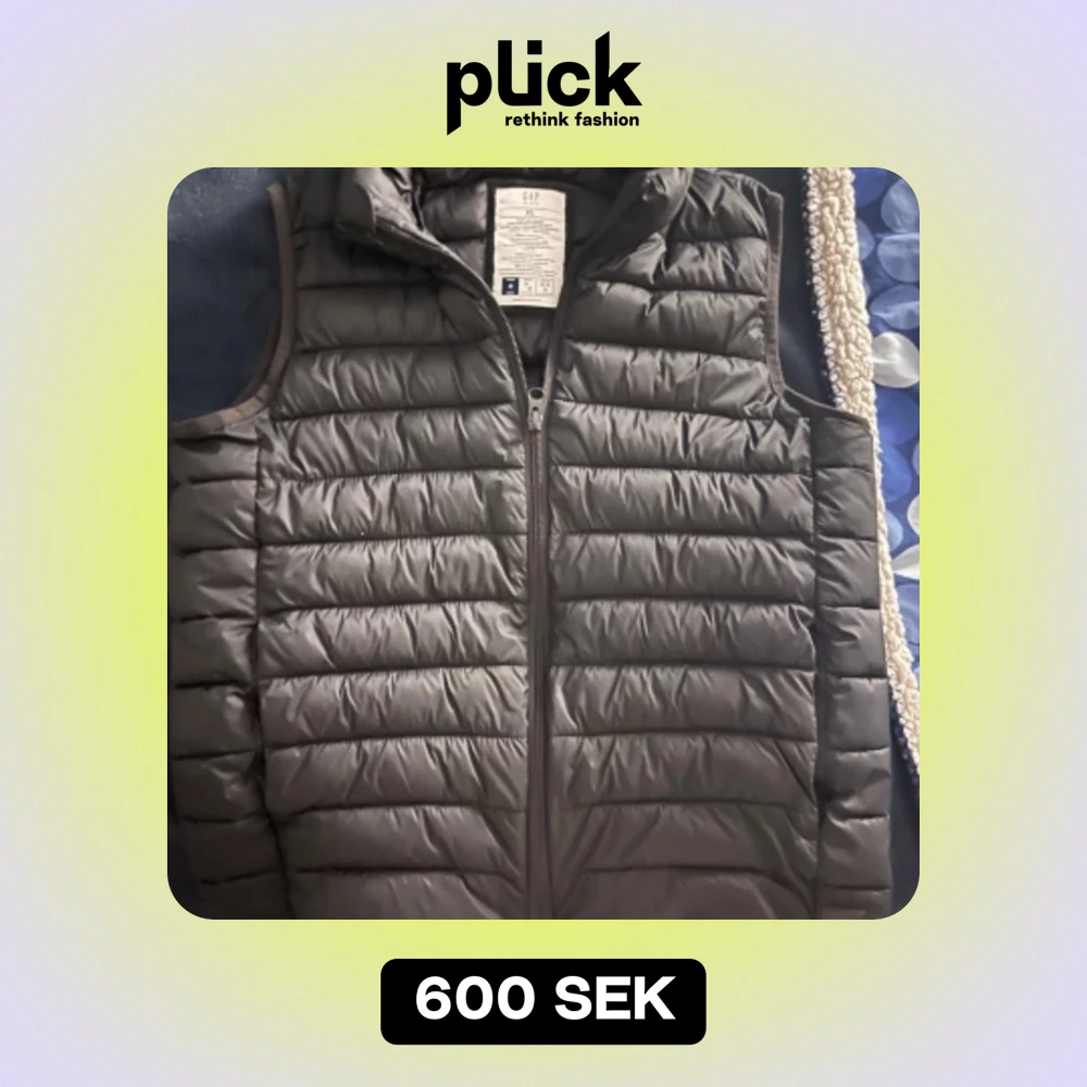 Säljer en svart dunväst från GAP i storlek XL kids. Västen är quiltad och har en dragkedja framtill. Perfekt för höst och vinter när du vill hålla dig varm men ändå ha armarna fria. Den är i nyskick och ser riktigt snygg ut. Passar bra till både vardag och lite mer avslappnade tillfällen.