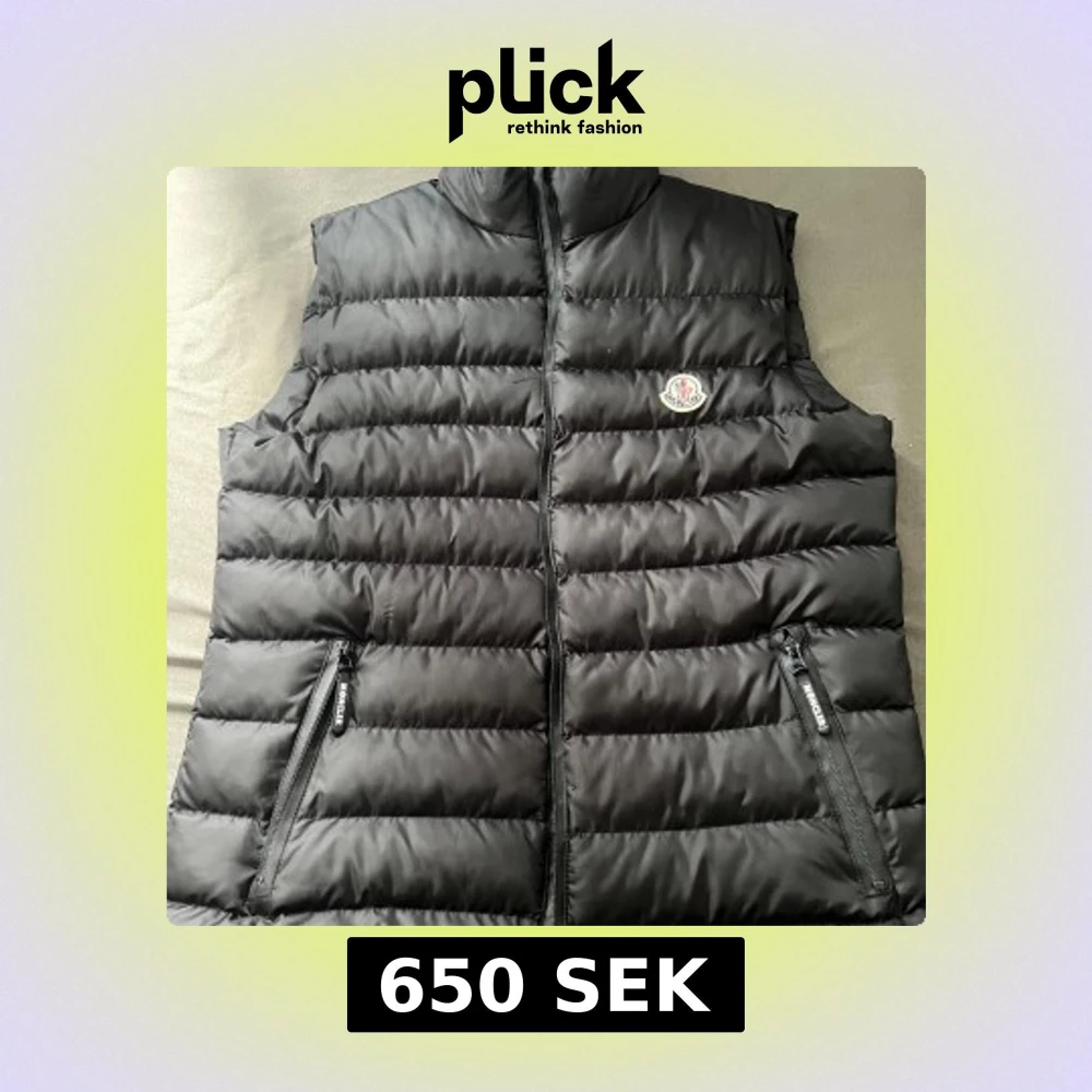 Säljer en svart dunväst från Moncler med hög krage och dragkedja framtill. Västen har två fickor med dragkedja och Moncler-logga på bröstet. Perfekt för lager-på-lager under kyliga dagar.
